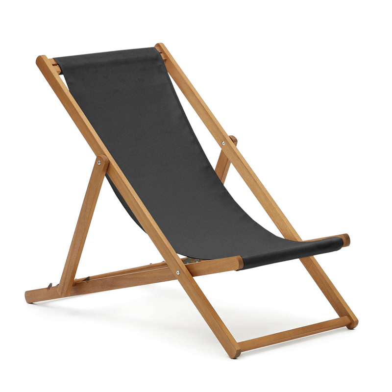 Adredna Складной шезлонг черного цвета с основанием из массива акации