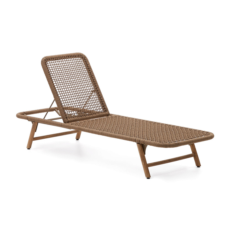 Шезлонг Dandara со стальной конструкцией, бежевым шнуром и ножками из 100% массива акации