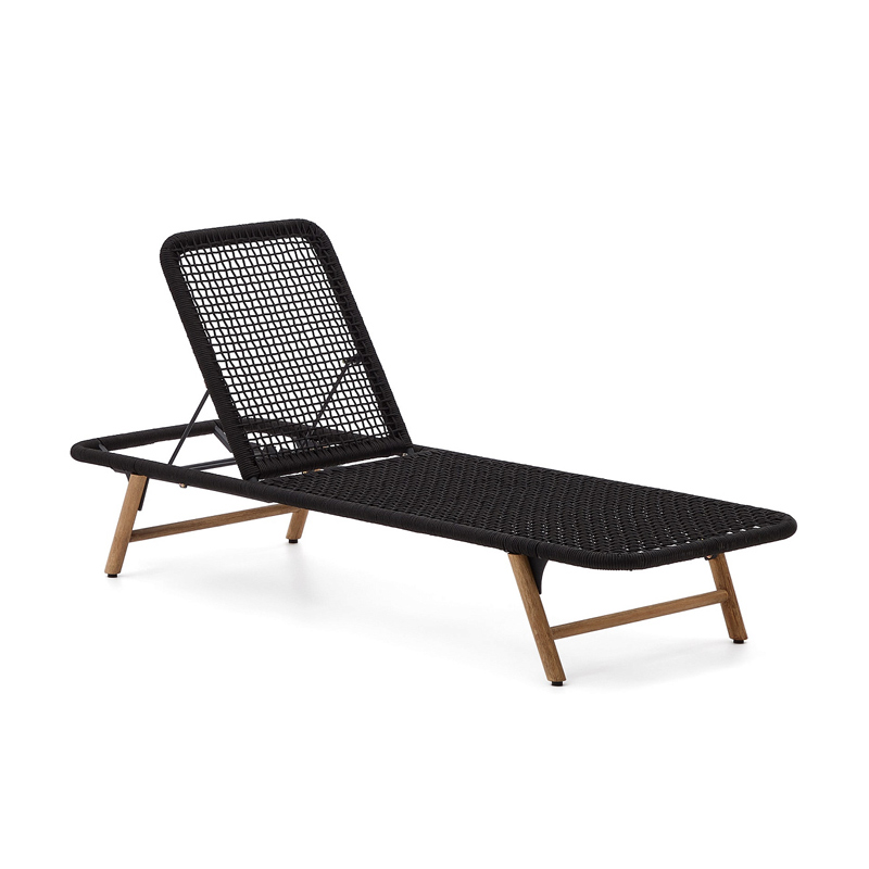 Шезлонг Dandara со стальной конструкцией, черным шнуром и ножками из 100% массива акации