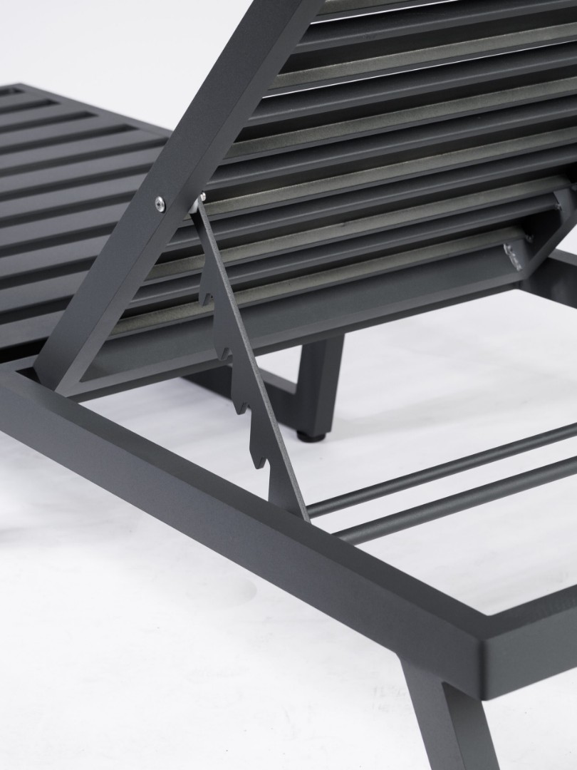 Алюминиевый каркас не ржавеет и противостоит воздействию внешних условий, что делает этот шезлонг идеальным выбором для использования на открытом воздухе.