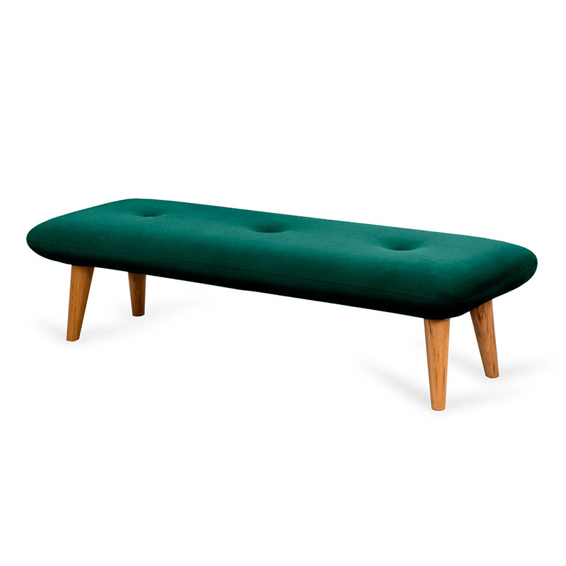 Запросить индивидуальное предложениеНевысокие (200 мм) ножки изготовлены из массива бука, дополнены фетровыми подпятниками, благодаря которым они не царапают напольное покрытие. Каркас выполнен из брусков дерева хвойных пород. А для максимального комфорта сидящего мы добавили в качестве наполнителя пенополиуретан марки ST (22/36) и синтепон – упругие, удобные, не теряющие формы даже при активном использовании мебели. Чехол из приятной на ощупь фактурной ткани несъёмный, декорирован пуговицами.