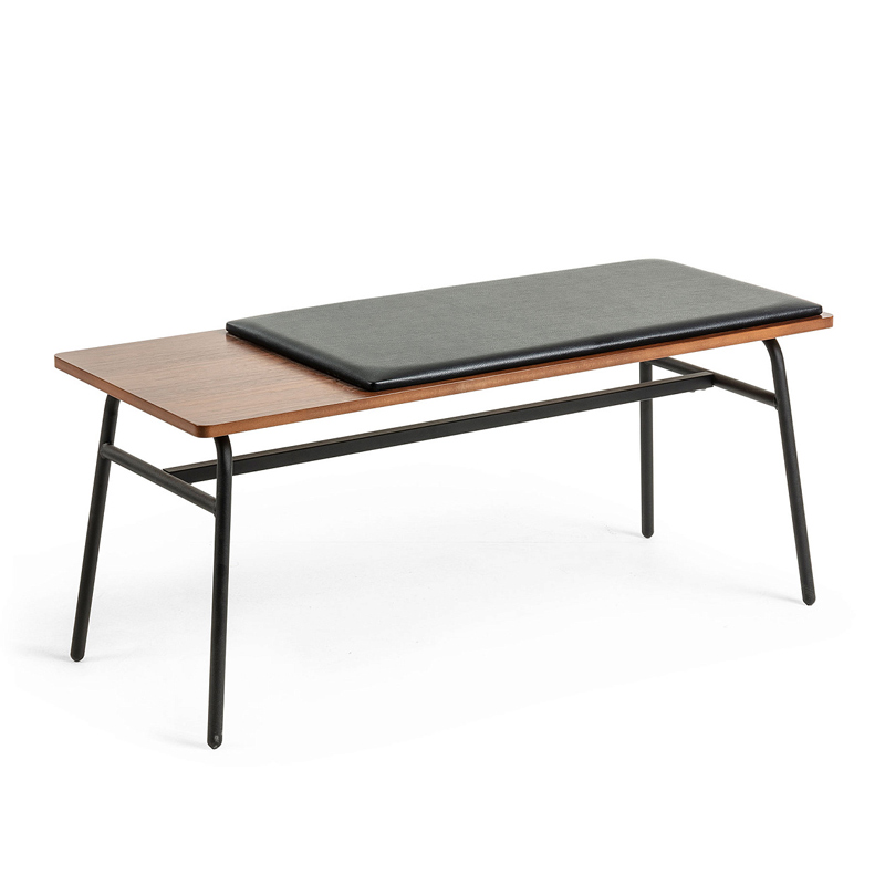 Сиденье состоит из двух деревянных панелей, где одна отделана шпоном орехового дерева, а вторая обтянута синтетической кожей черного цвета.