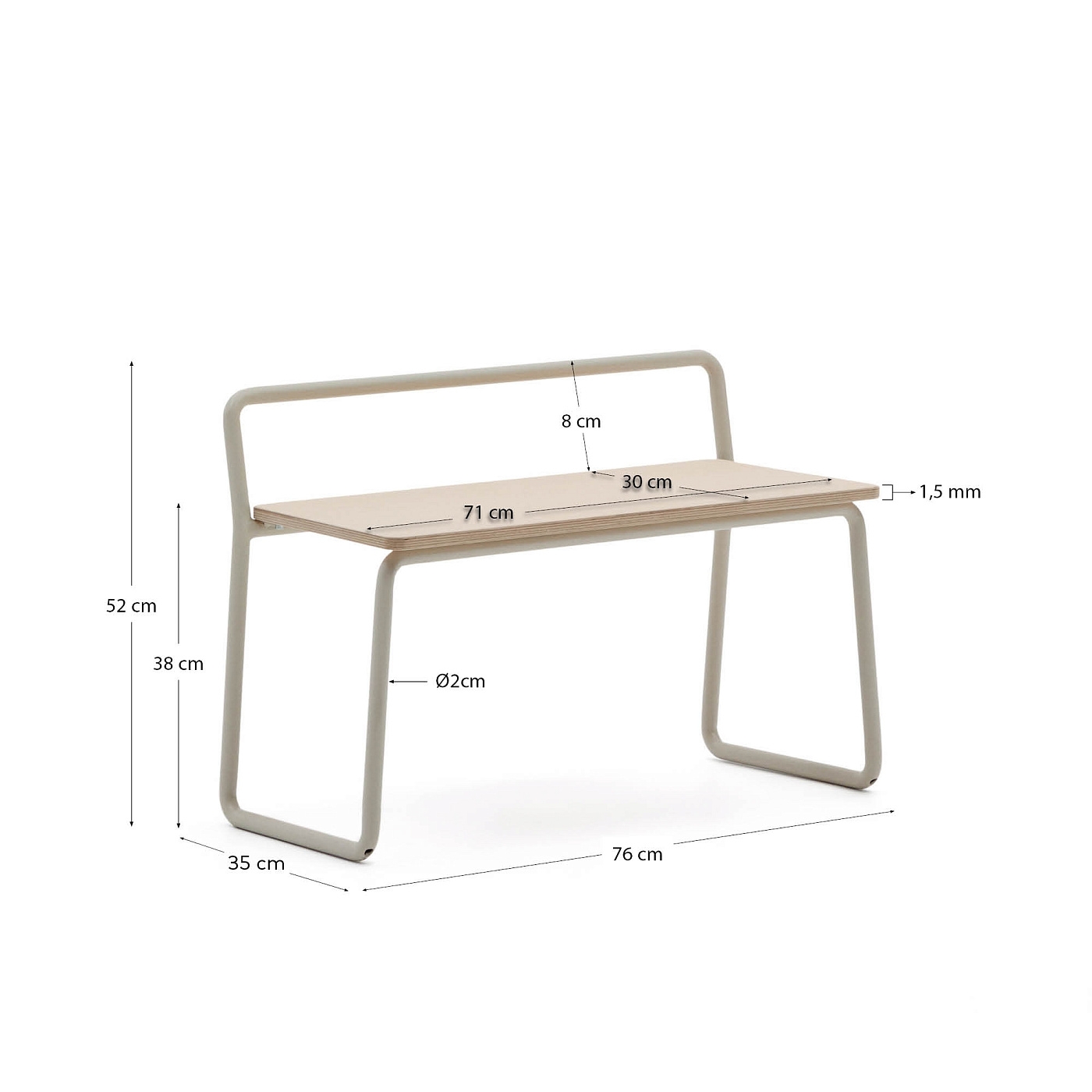 Скамейка из ясеневого шпона Tinn с бежевой металлической конструкцией, 75 см