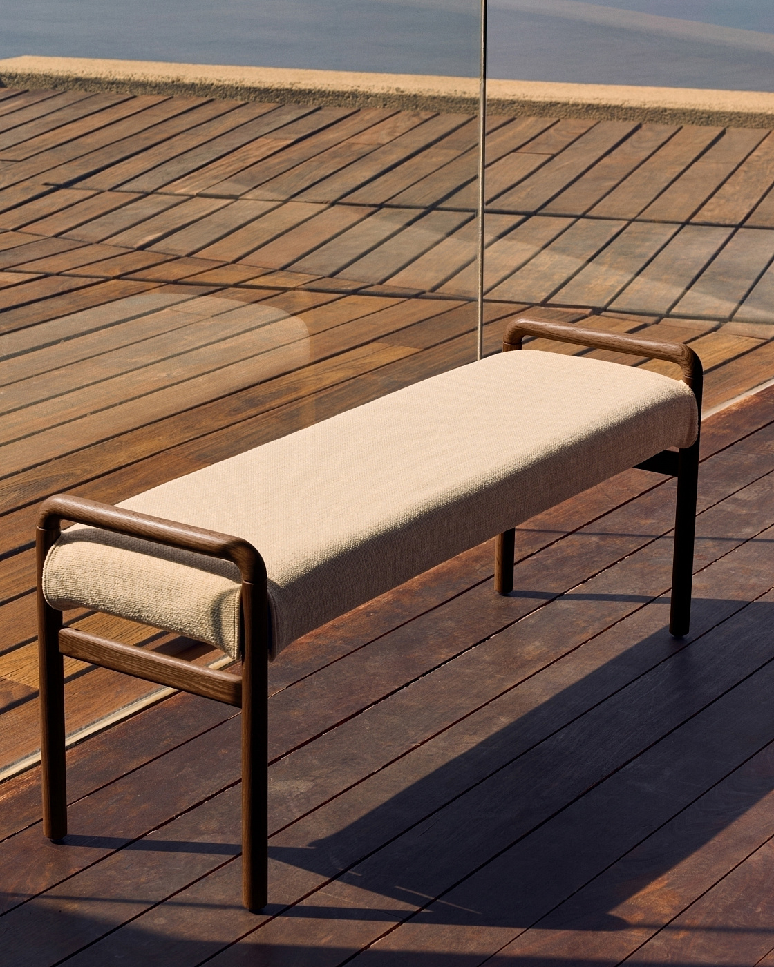 Скамейка Macaret со съемным чехлом из массива дуба с отделкой орех 120 см