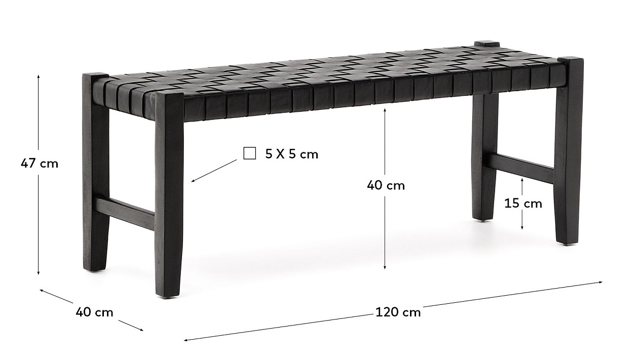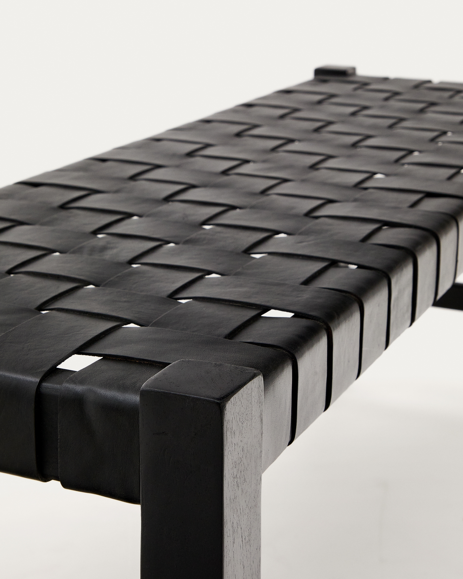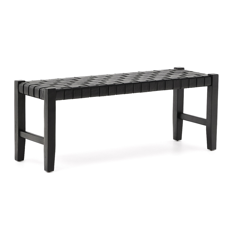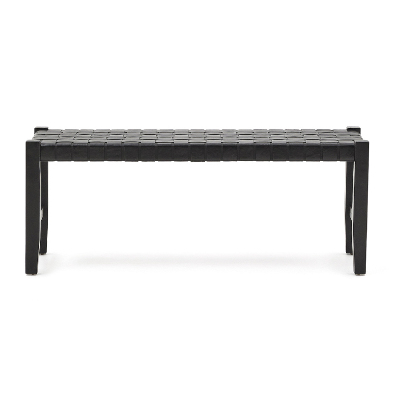 Скамья Calixta из кожи и красного дерева с черной отделкой 120 см
