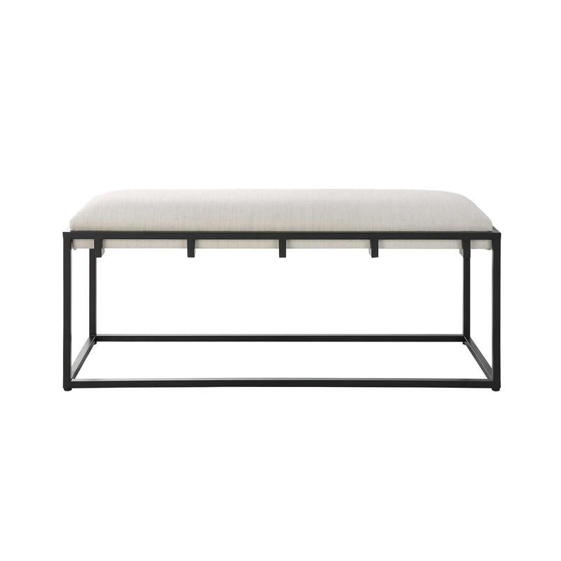 Запросить индивидуальное предложениеБанкетка “Броган” представляет собой классическое цветовое сочетание. Она имеет матовую черную железную раму и сочетается с мягким сиденьем с мягкой обивкой из бежевого лёна.
