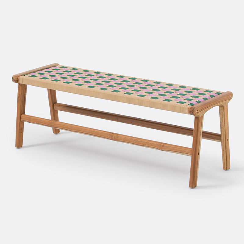 Скамья из тика с плетением Bianca единый размер розовый