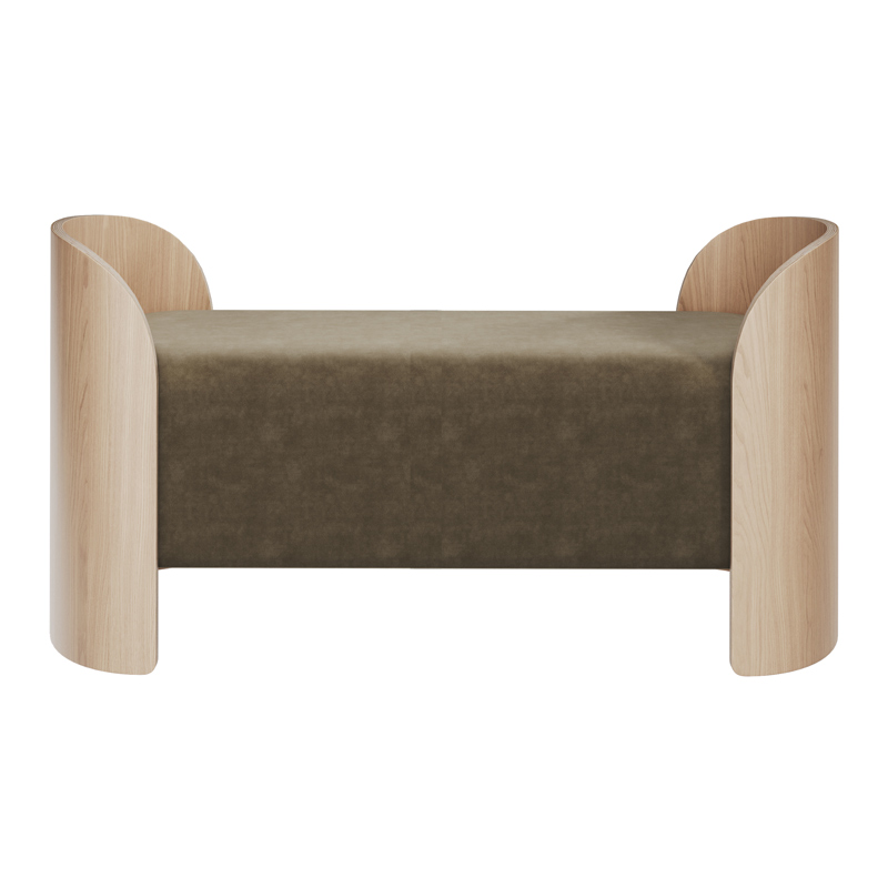 Банкетка Lagom 2 120 см (серо-зеленый FiberGuard, натуральный дуб)
