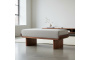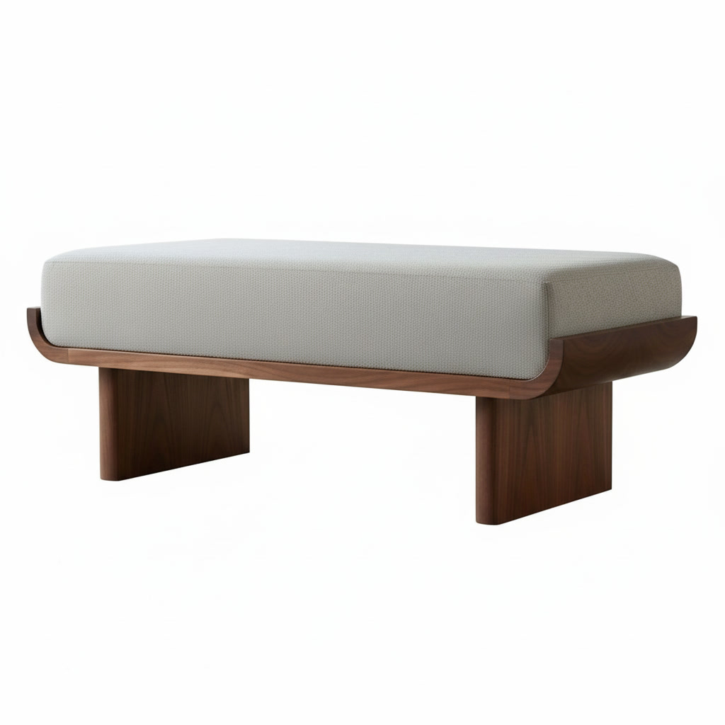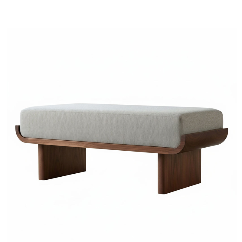 Основание из шпонированной фанеры, отделанной американским орехом, подчёркивает насыщенный цвет и выразительную текстуру древесины. Радиусные края основания формируют ощущение защиты и поддержки мягкой части.