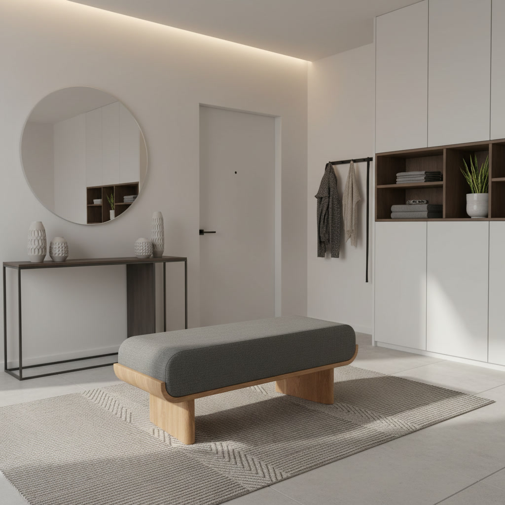 EMBRACE Oak подходит для прихожих, спален, зон ожидания, гардеробных и общественных пространств, где важны комфорт, дизайн и ощущение продуманного объекта.