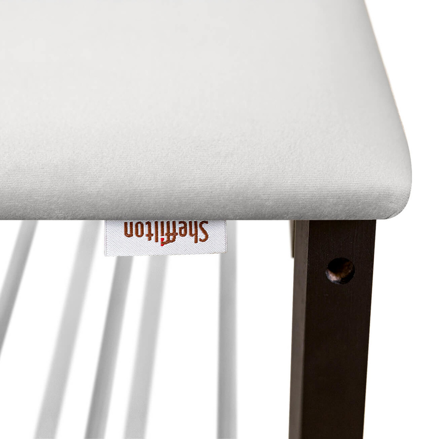 Ножки выполнены из массива дерева, толщиной 35 мм., сиденье из микровелюра, полки из металла, диаметр/толщина трубы 12х0,8 мм.