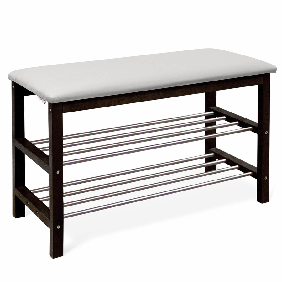 Уютная банкетка с мягким сидением и полками для размещения обуви и тапочек.