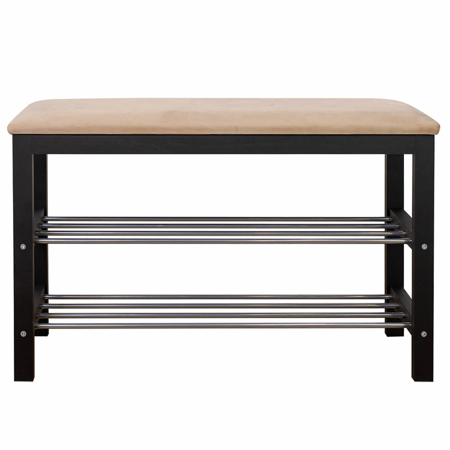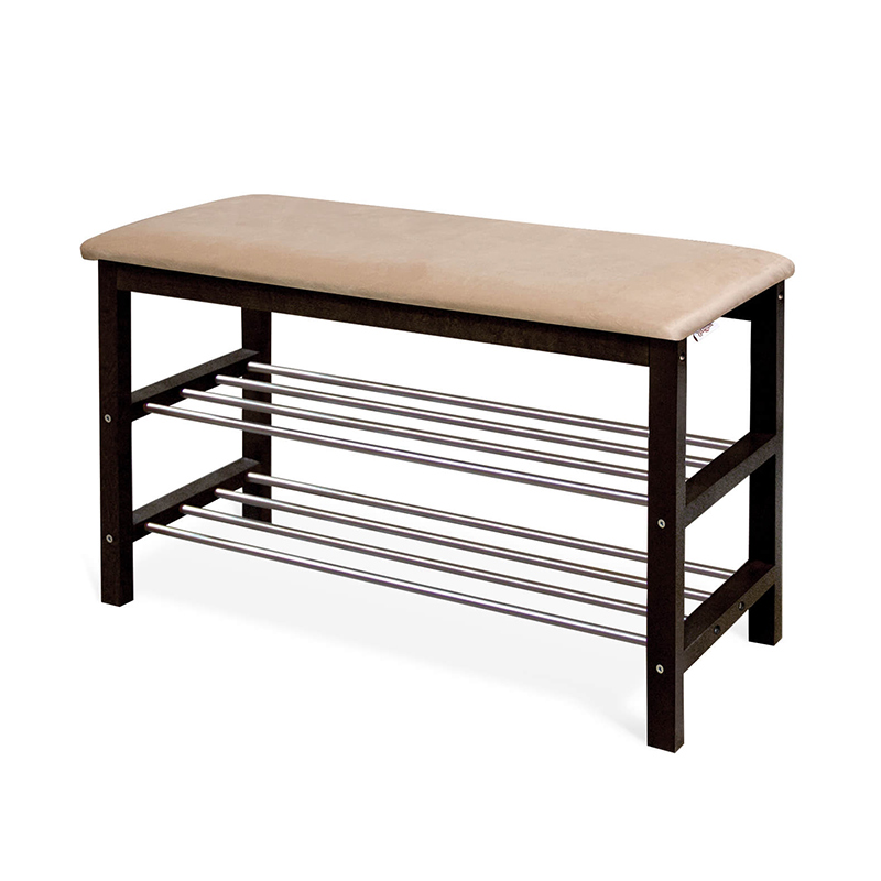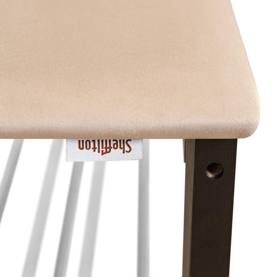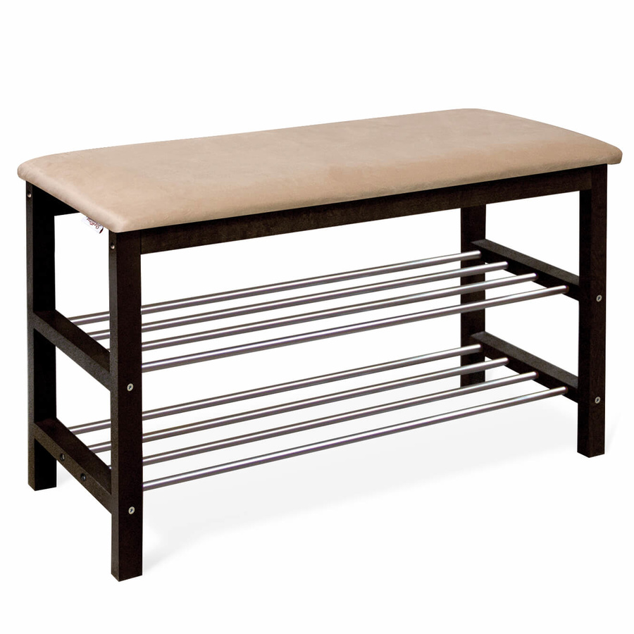 Запросить индивидуальное предложениеНожки выполнены из массива дерева, толщиной 35 мм., сиденье из микровелюра, полки из металла, диаметр/толщина трубы 12х0,8 мм.