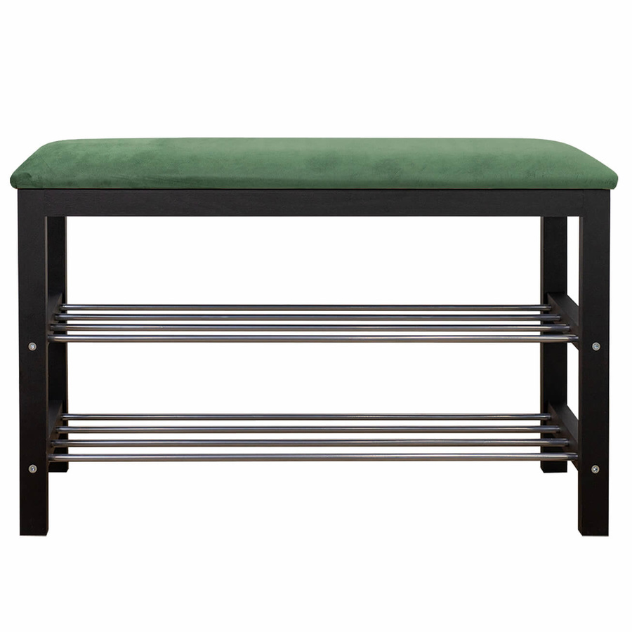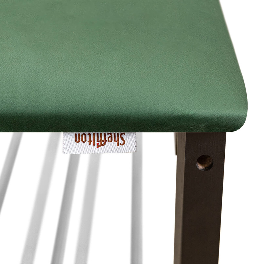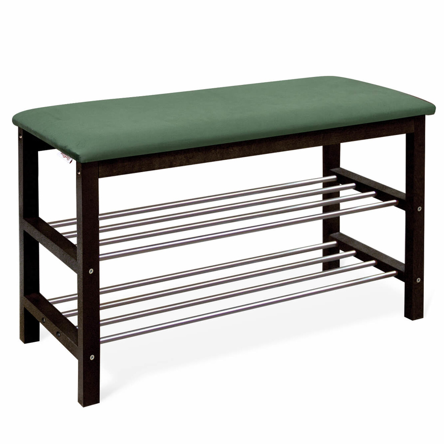 Запросить индивидуальное предложениеНожки выполнены из массива дерева, толщиной 35 мм., сиденье из микровелюра, полки из металла, диаметр/толщина трубы 12х0,8 мм.