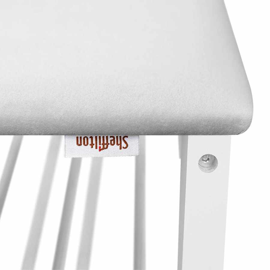 Запросить индивидуальное предложениеНожки выполнены из массива дерева, толщиной 35 мм., сиденье из микровелюра, полки из металла, диаметр/толщина трубы 12х0,8 мм.