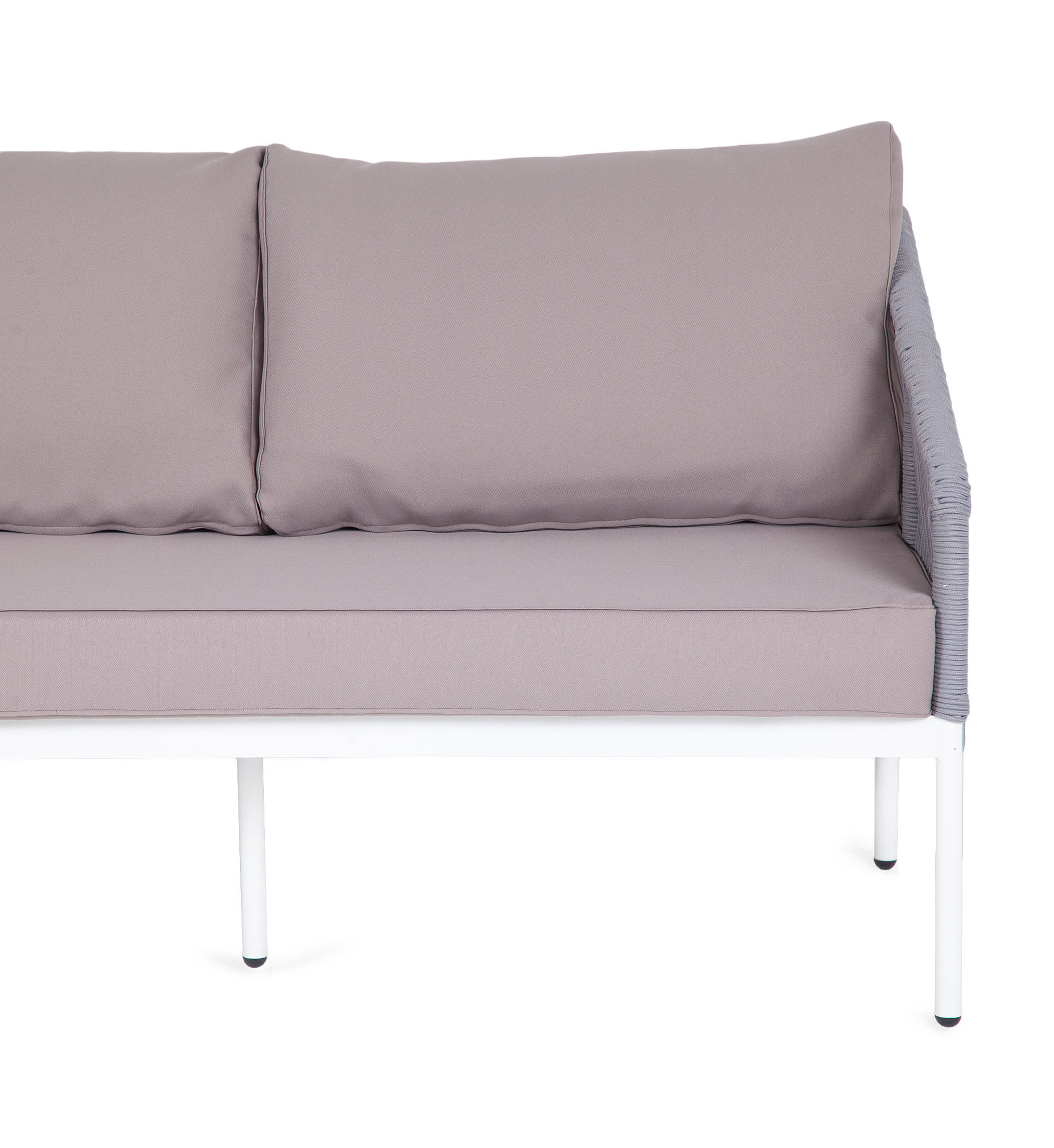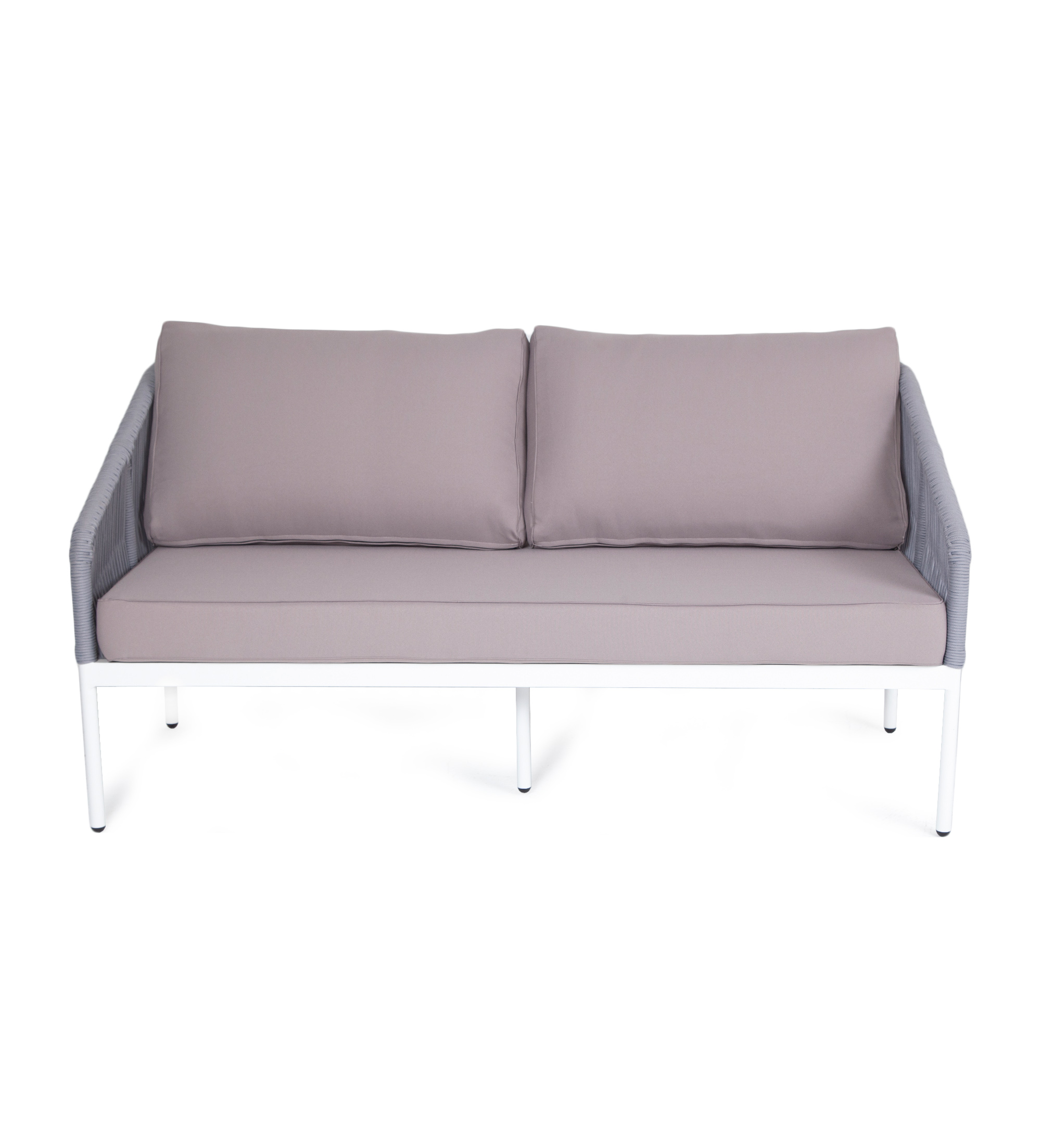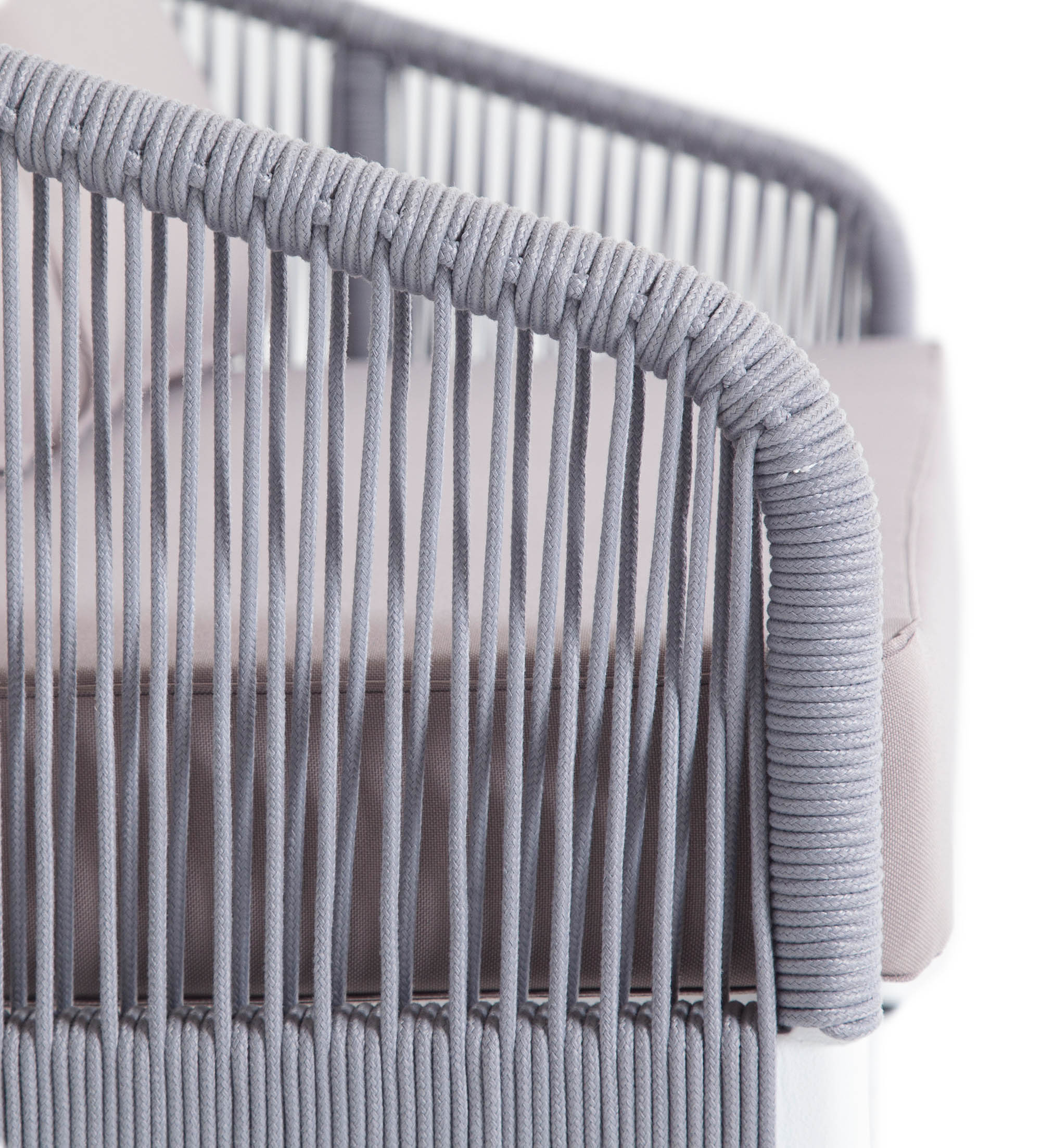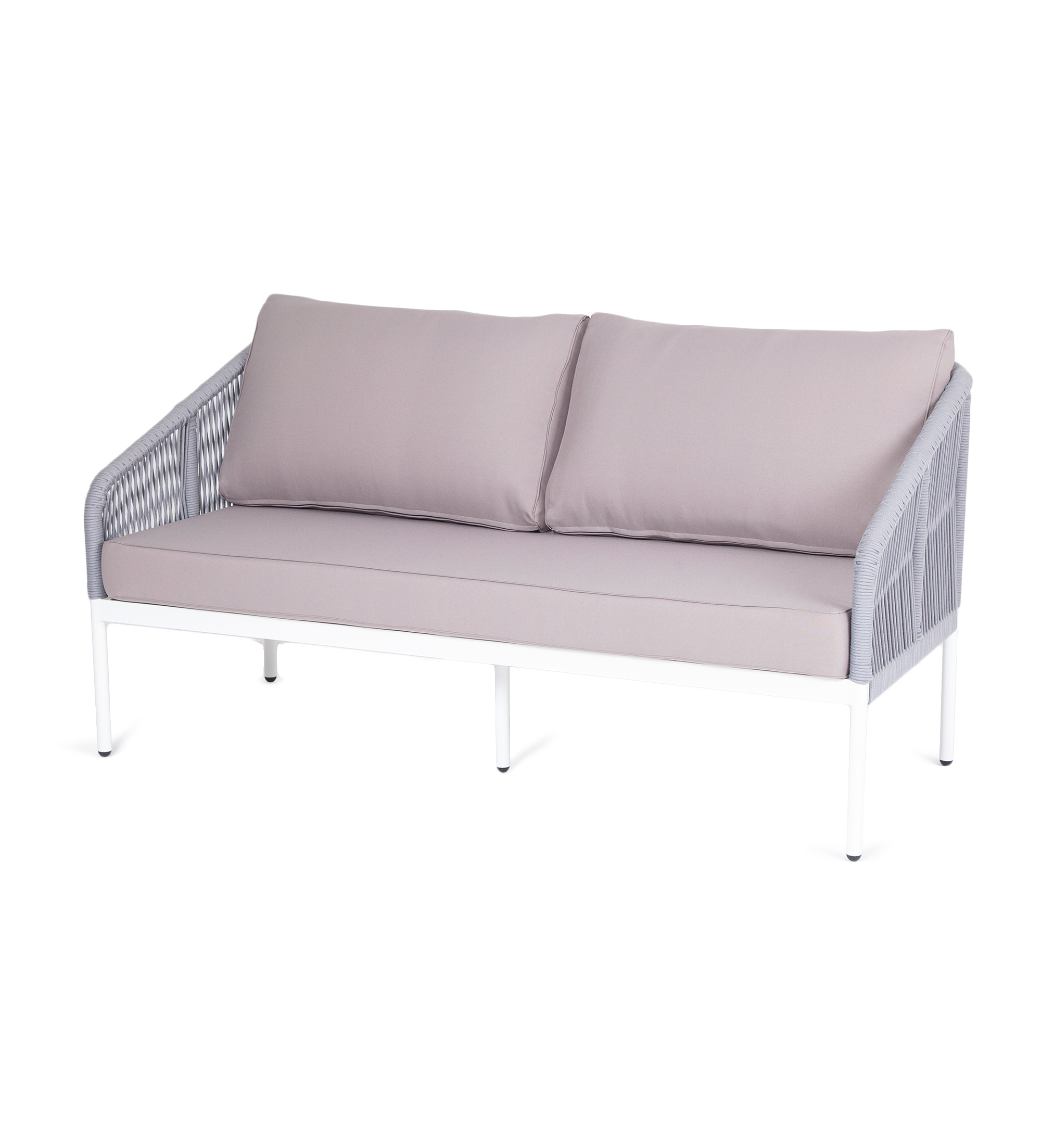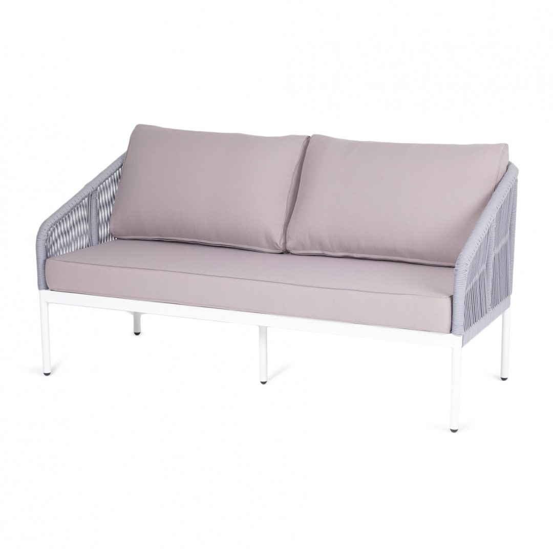 "Канны" диван плетеный из роупа (веревки) двухместный, каркас белый, светло-серое плетение, под ash