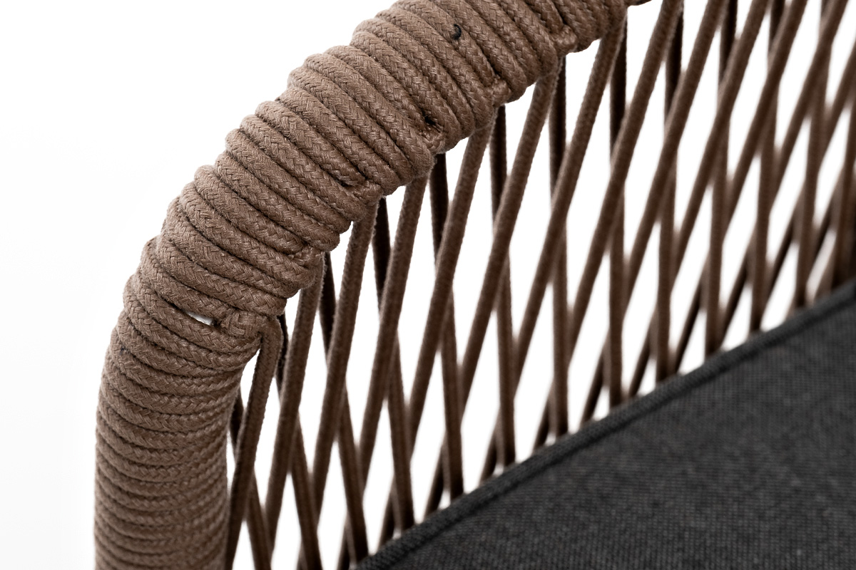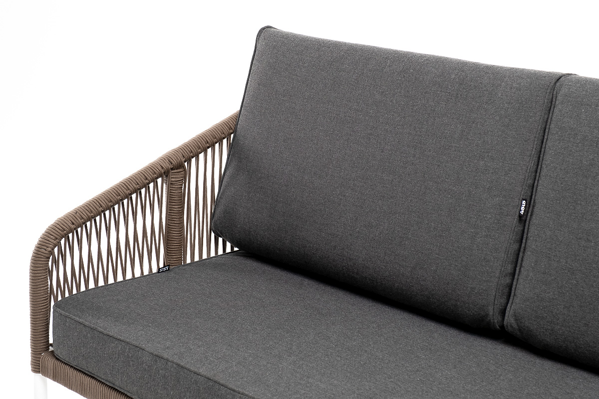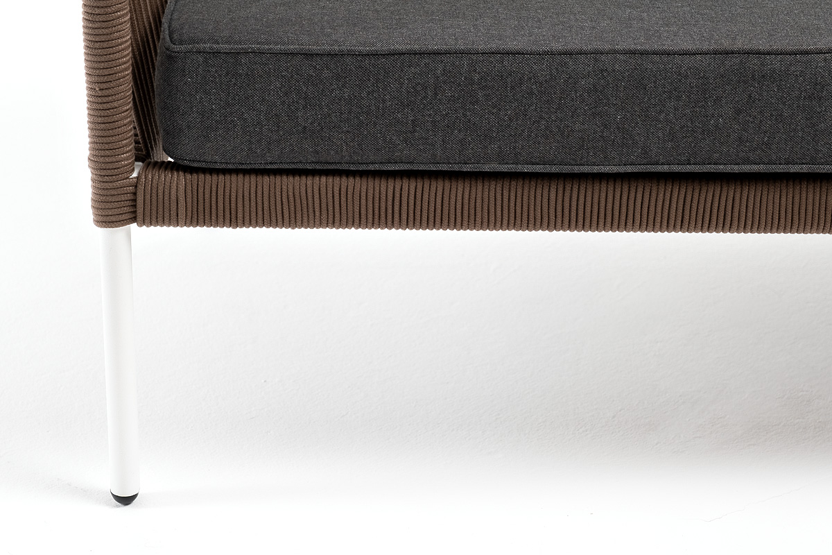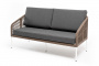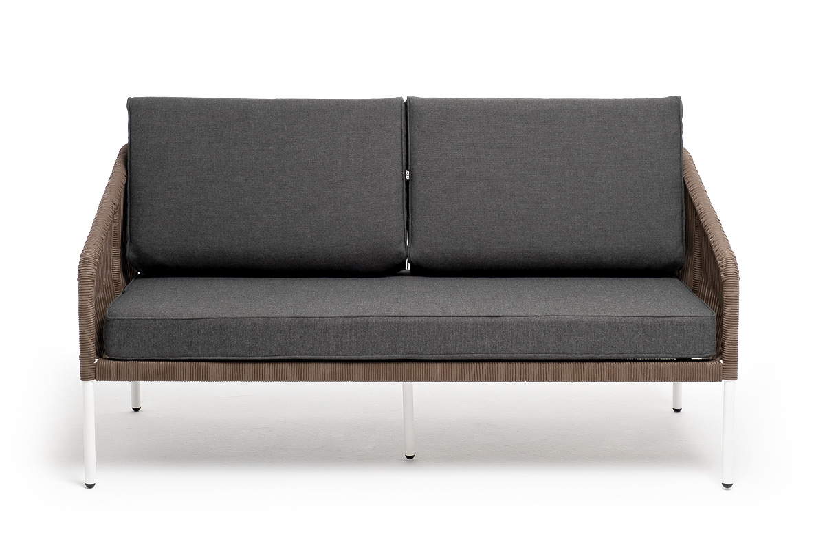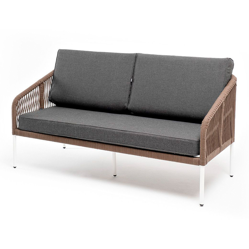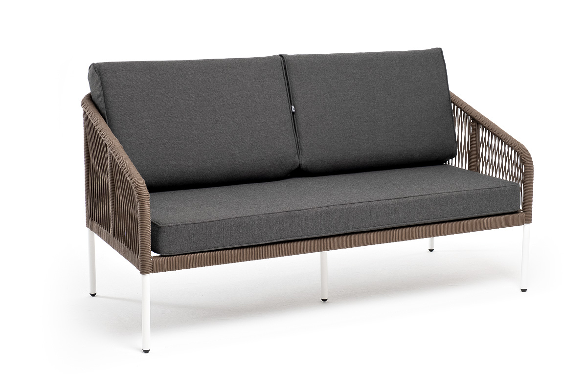 "Канны" диван плетеный из роупа 2-местный, каркас алюминий белый, роуп коричневый, ткань серая
