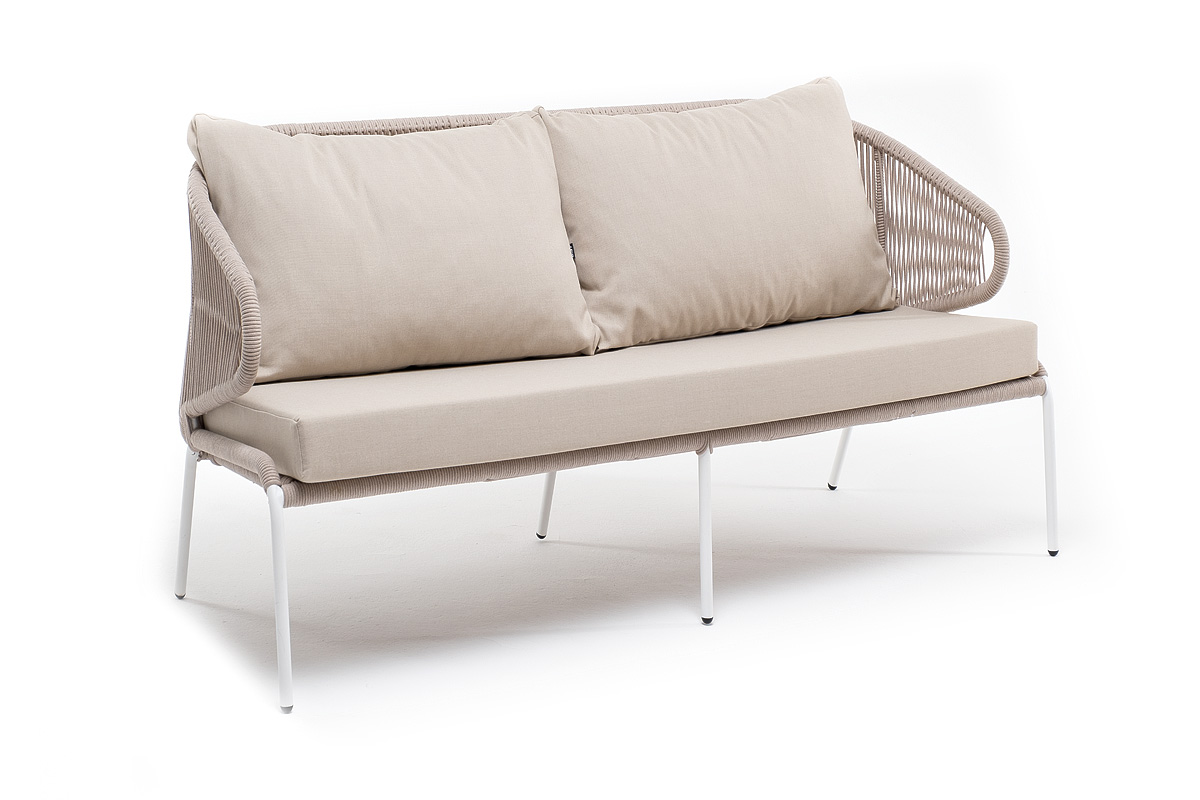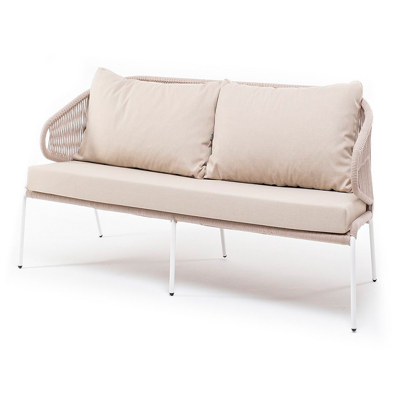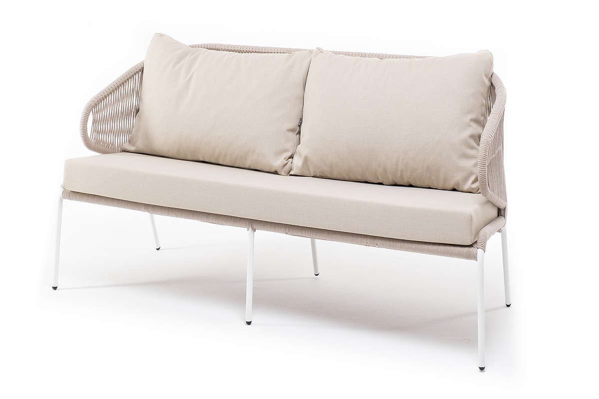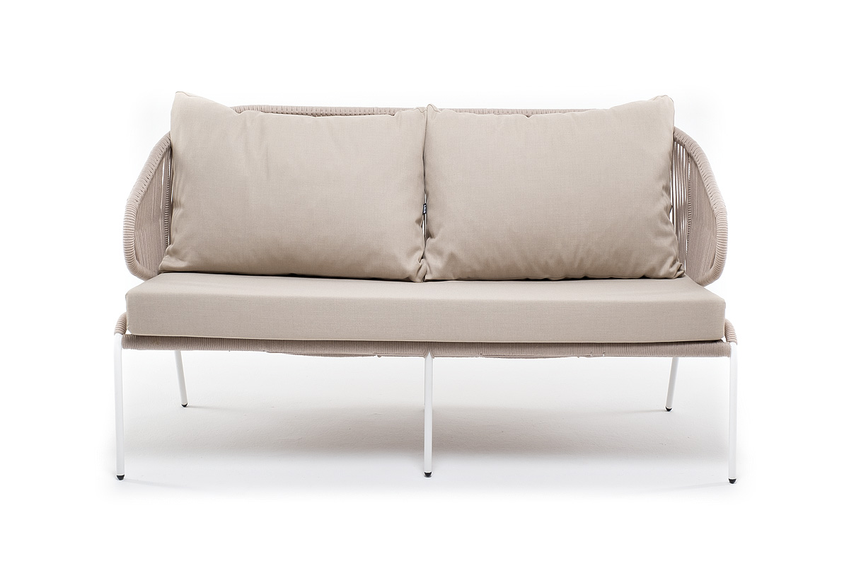 "Милан" диван двухместный плетеный из роупа, каркас алюминиевый белый, роуп бежевый, подушка бежевая