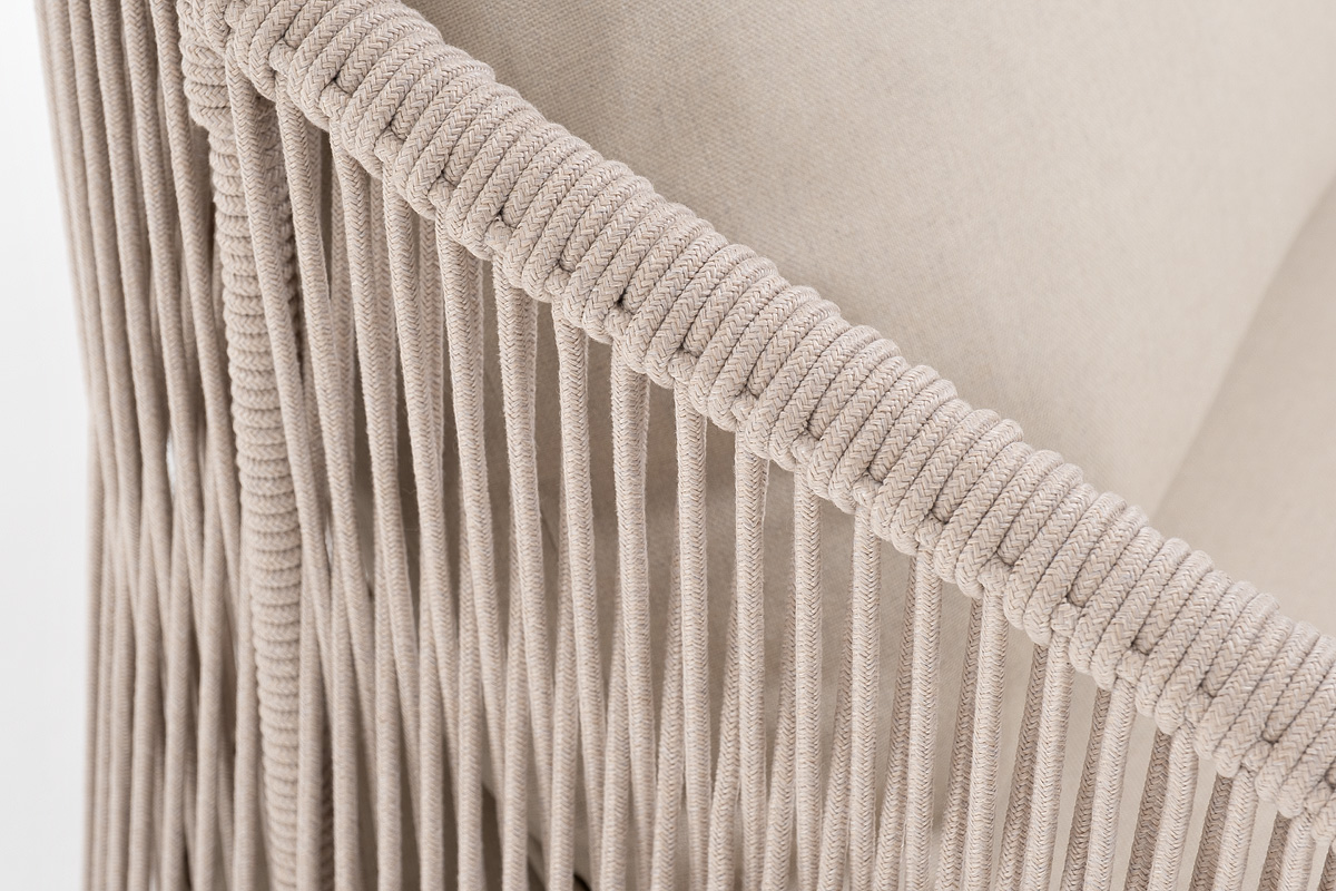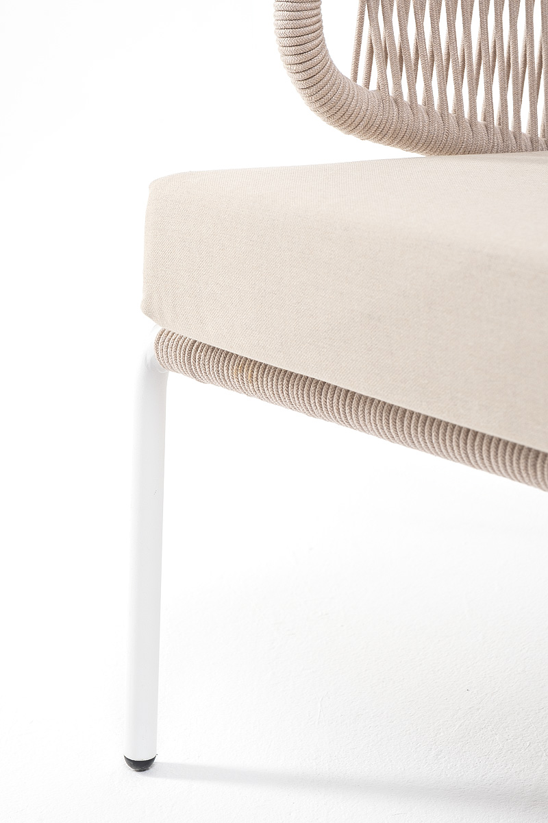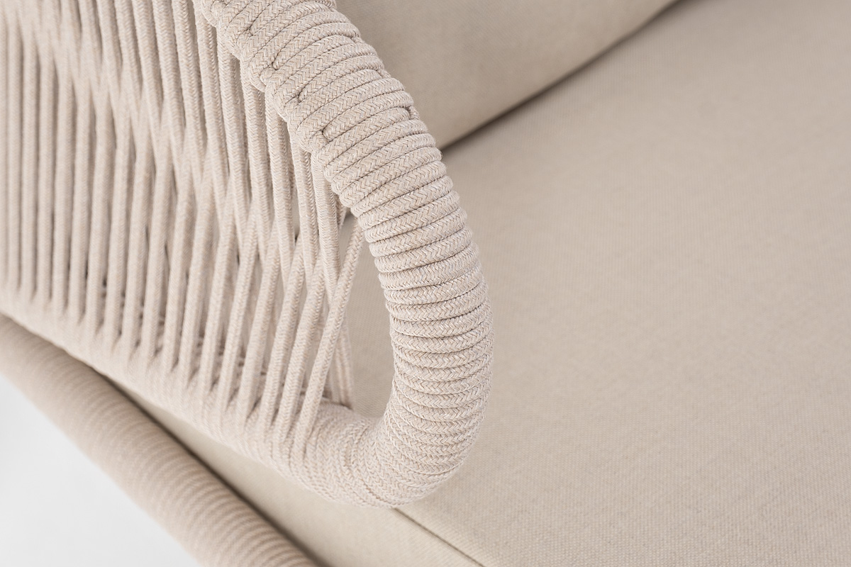 "Милан" диван двухместный плетеный из роупа, каркас алюминиевый белый, роуп бежевый, подушка бежевая