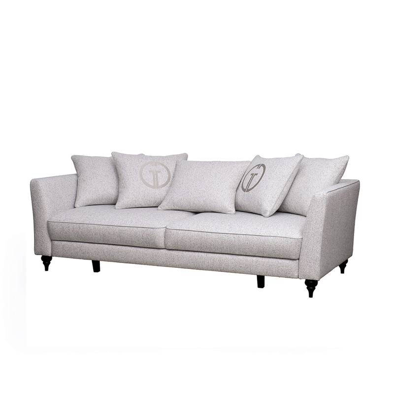 Запросить индивидуальное предложениеСтильный раскладной диван для гостиной SORRENTO воплощает в себе аристократическую элегантность и максимальный комфорт. Мягкая спинка с подлокотниками и декоративные подушки делают отдых уютным и красивым. За счет надежной системы трансформации «пума», трехместный диван легко становится удобным спальным местом для двоих человек и гарантирует здоровый сон. Собственное мебельное производство Garda Decor позволяет купить диван в Москве с изменениями в дизайне. Каркас дивана выполнен из калиброванного деревянного бруса 1 категории; в основании дивана - высококачественная фанера из натуральной березы и эластичные ремни. Механизм трансформации - Пума. Диван с кантом. Высота спинки (габаритная с подушками) - 86см. Ширина подлокотника 15см. В комплекте - 5 подушек спинки 57*65см. В стандартном исполнении: обивка в ткани из коллекции Garda Decor- рогожка Santo1902-SECRU, кант- иск.кожа Nevada 83, цвет ножек - 4, колесная опора - нет. Вышивка эмблема GD в цвет канта на двух приспинных подушках.