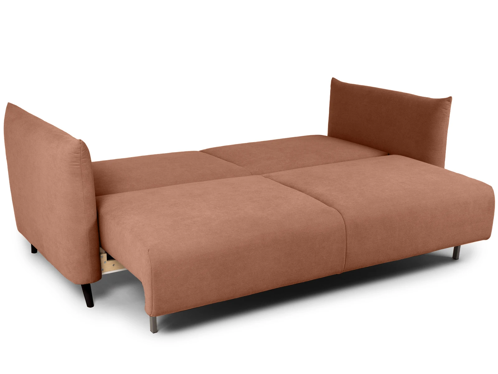 Диван Menfi превращается в кровать с помощью выдвижного механизма «еврокнижка» — прост и надежен в эксплуатации. Чтобы трансформировать диван нужно вытянуть секцию сиденья вперед, а на освободившееся место положить спинку дивана. Под сиденьем есть ниша, в которой можно хранить белье, текстиль, различные вещи.