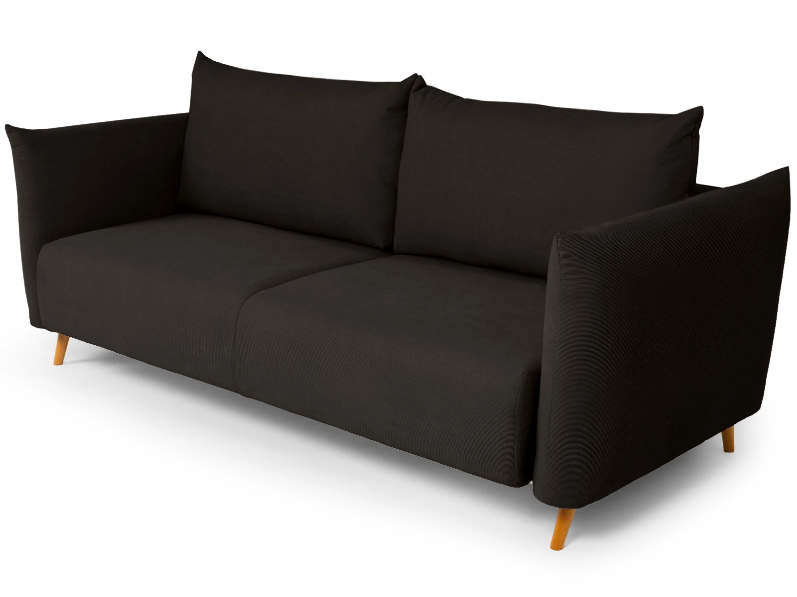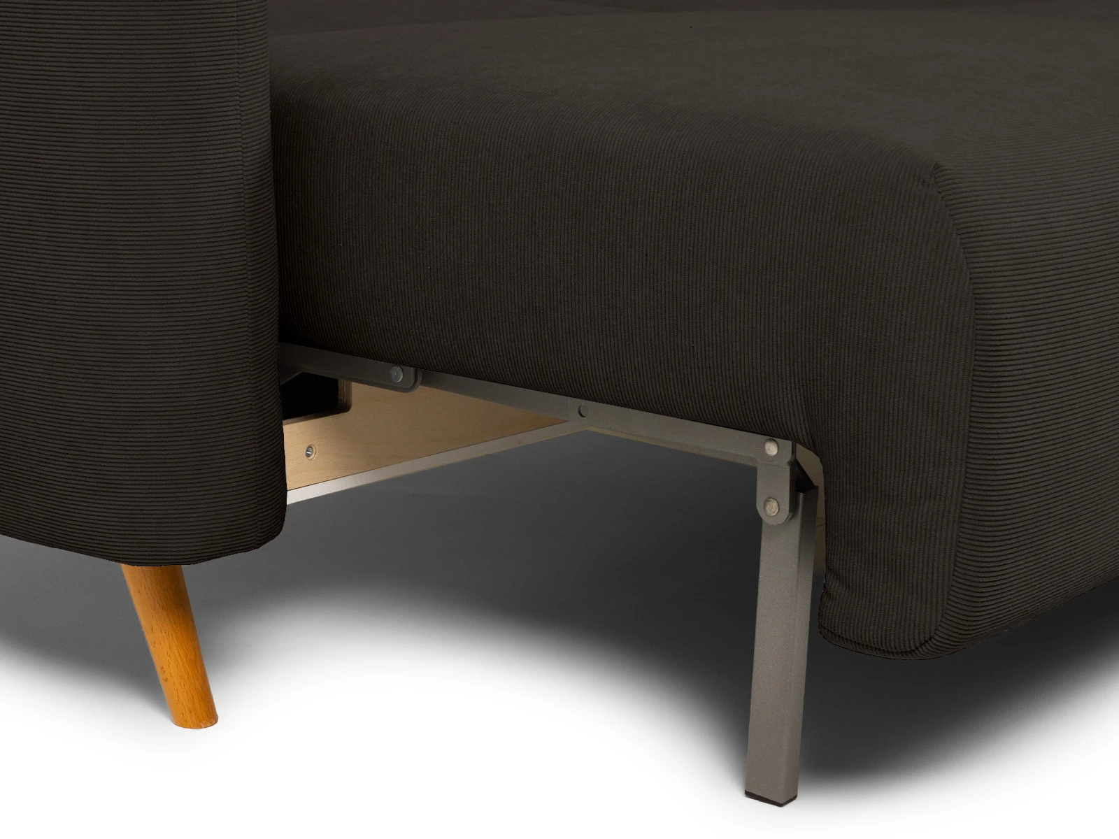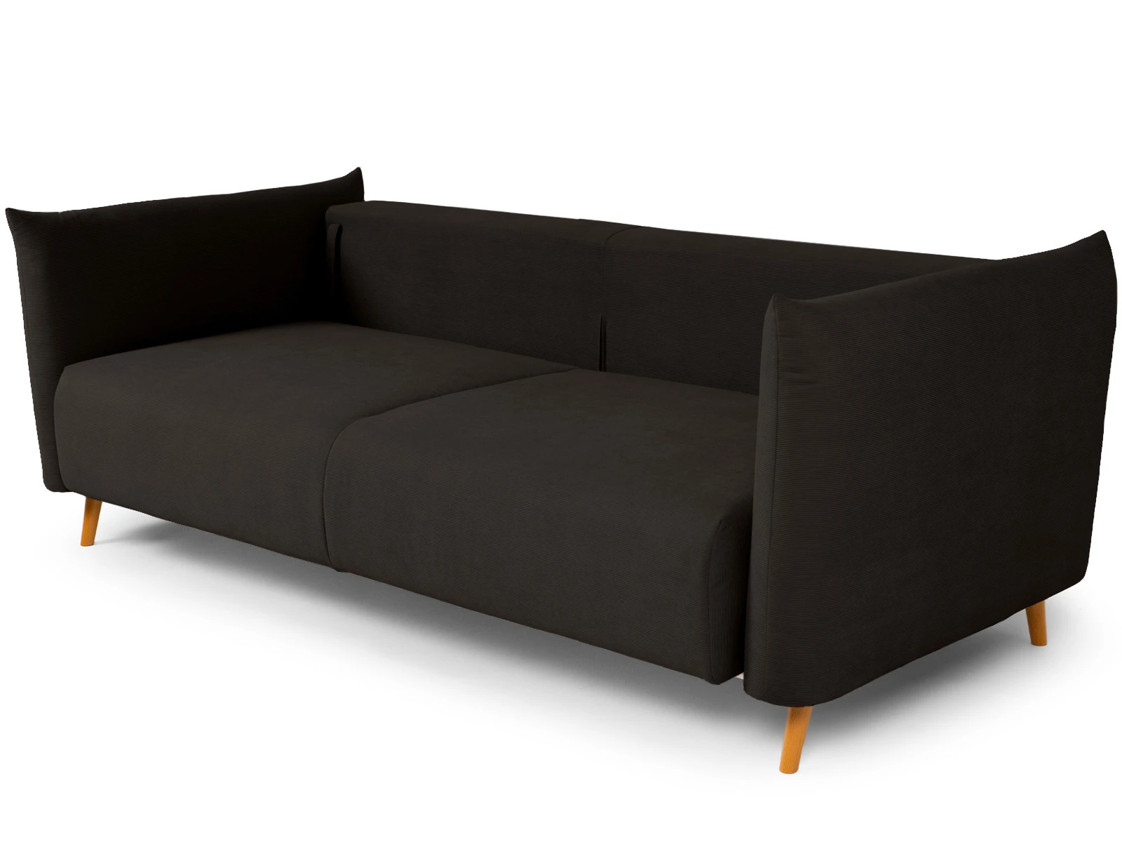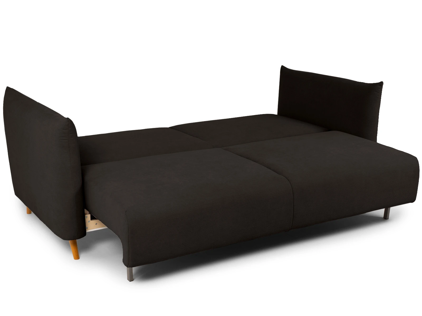 Диван Menfi превращается в кровать с помощью выдвижного механизма «еврокнижка» — прост и надежен в эксплуатации. Чтобы трансформировать диван нужно вытянуть секцию сиденья вперед, а на освободившееся место положить спинку дивана. Под сиденьем есть ниша, в которой можно хранить белье, текстиль, различные вещи.