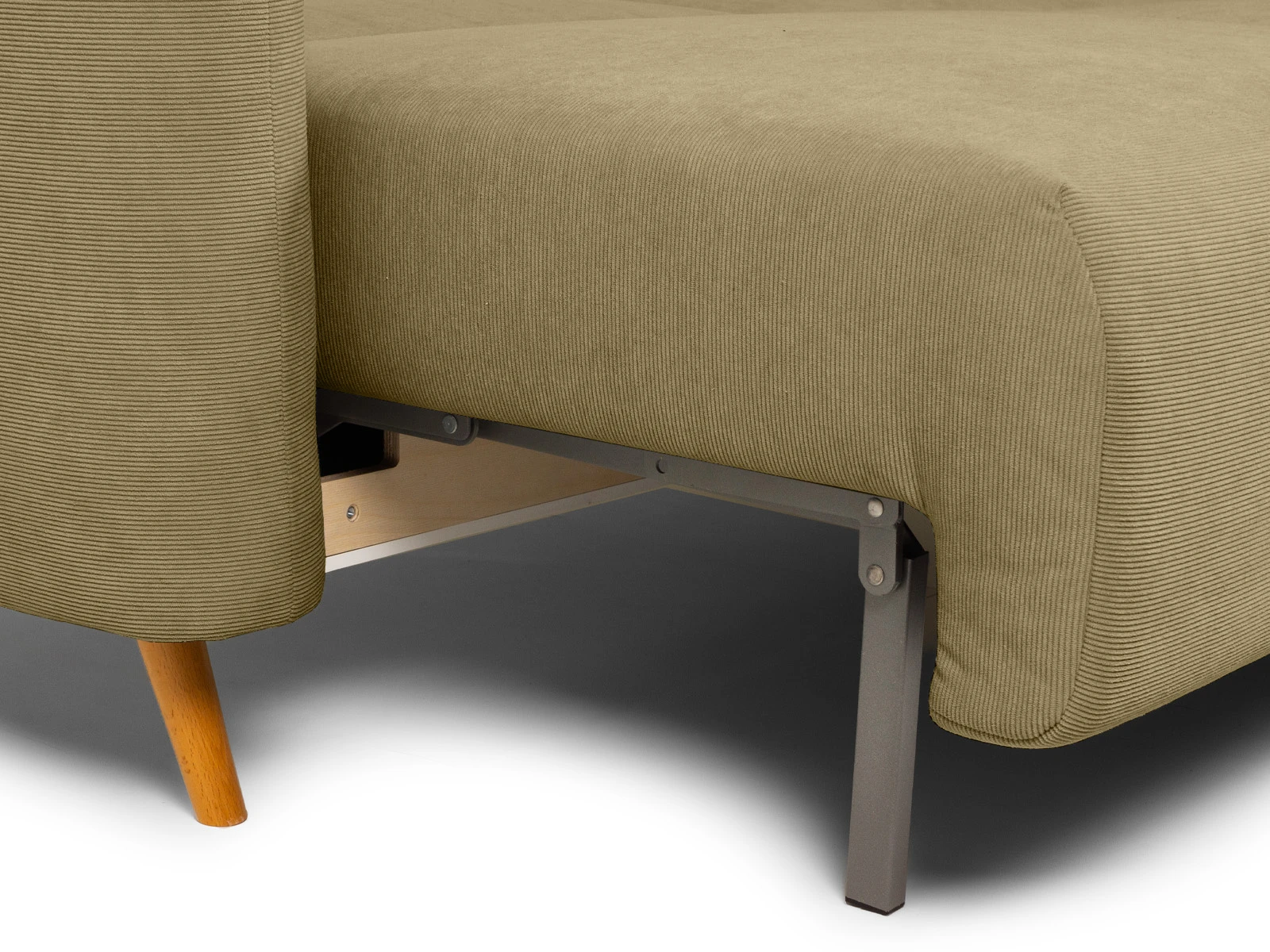 Диван Menfi превращается в кровать с помощью выдвижного механизма «еврокнижка» — прост и надежен в эксплуатации. Чтобы трансформировать диван нужно вытянуть секцию сиденья вперед, а на освободившееся место положить спинку дивана. Под сиденьем есть ниша, в которой можно хранить белье, текстиль, различные вещи.