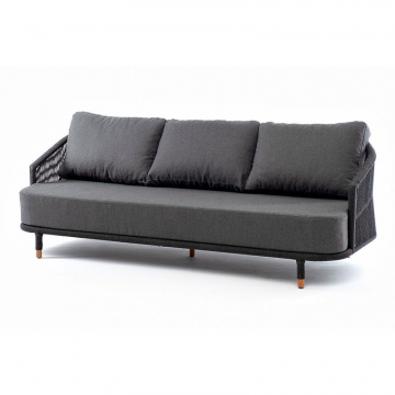 "Верона" диван 3-местный плетеный из роупа, каркас алюминий темно-серый (RAL7024) муар, роуп темно-серый круглый, ткань темно-серая 027