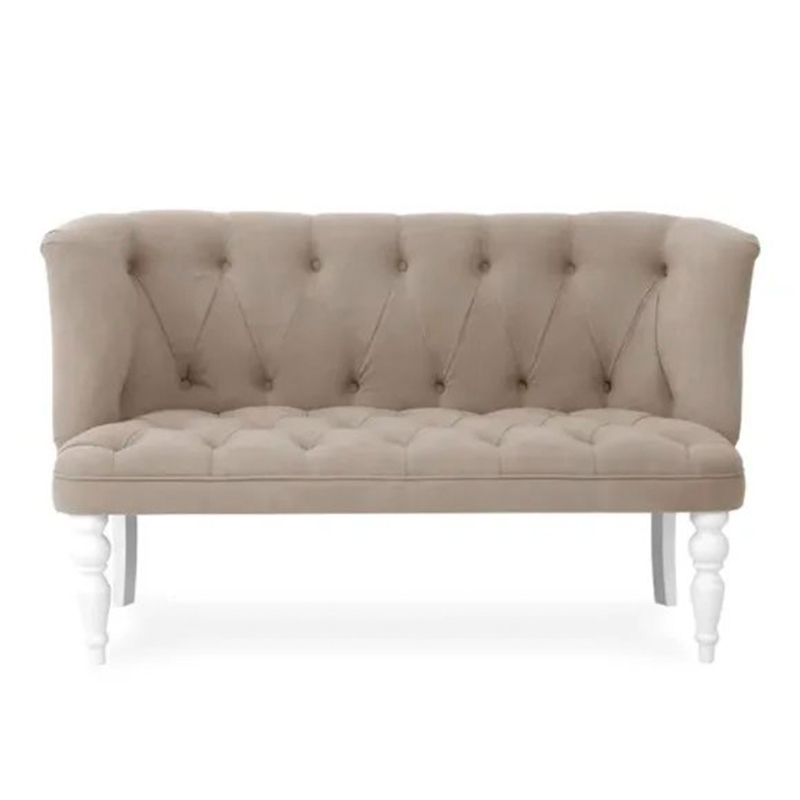Запросить индивидуальное предложениеДвухместный прямой диван с изящным изголовьем и резными ножками из натурального дерева.
