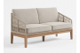 "Канны" диван 2-местный плетеный из роупа, основание дуб, роуп коричневый круглый, ткань бежевая 052