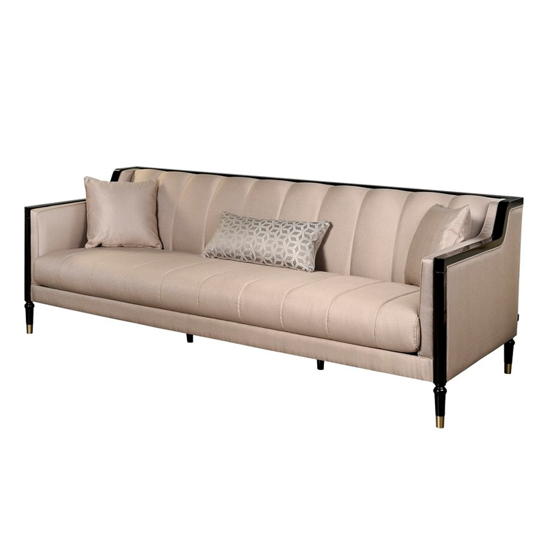 Запросить индивидуальное предложениеТрехместный диван, выполненный в стиле ар-деко. Каркас изготовлен из массива бука. Сидение на эластичных ремнях, наполнитель пенополиуретан. Внутренняя часть спинки декорирована вертикальной стежкой.