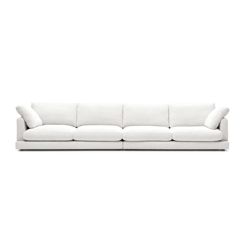 Запросить индивидуальное предложениеДиван Gala от фабрики La Forma (ex Julia Grup) – бескомпромиссный комфорт и габариты. Диван Gala сделает вашу гостиную центром притяжения. Впечатляющие габариты и запредельный комфорт – две главные особенности этой модели Светлый цвет обивки защищен от пятен, поэтому вам не стоит беспокоиться о случайно пролитых напитках. Сделайте свою обстановку светлой и современной. Пусть для отдыха будет много места. Диван имеет каркасную конструкцию из сосновой древесины. Каркас обшит синтетическим наполнителем и обтянут плотной износостойкой тканью. Материал пропитан защитой от пятен, обладает высокой износостойкостью, прочностью на разрыв. Цвет обивки на ваш выбор – бежевый или белый. Диван дополнен подушками со съемными чехлами. Чехлы можно стирать в машинке на деликатном режиме. Наполнитель – синтетическая пена с эффектом перьевого пуха. Она не впитывает запахи, обеспечивает комфорт и удобство. Диван установлен на деревянных ножках с накладками для защиты от повреждений. Максимальный вес нагрузки – 600 кг. Размеры: ширина – 390 см, высота – 87см, глубина – 105 см Вес – 124.4 кг. Возможно потребуется минимальная сборка. Инструкция и крепеж включены в комплектацию. В коллекции Gala также представлены кушетка и пуфик