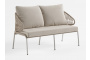 "Милан" диван 2-местный плетеный из роупа, каркас алюминий светло-серый (RAL7035) муар, роуп бирюзовый круглый, ткань светло-серая