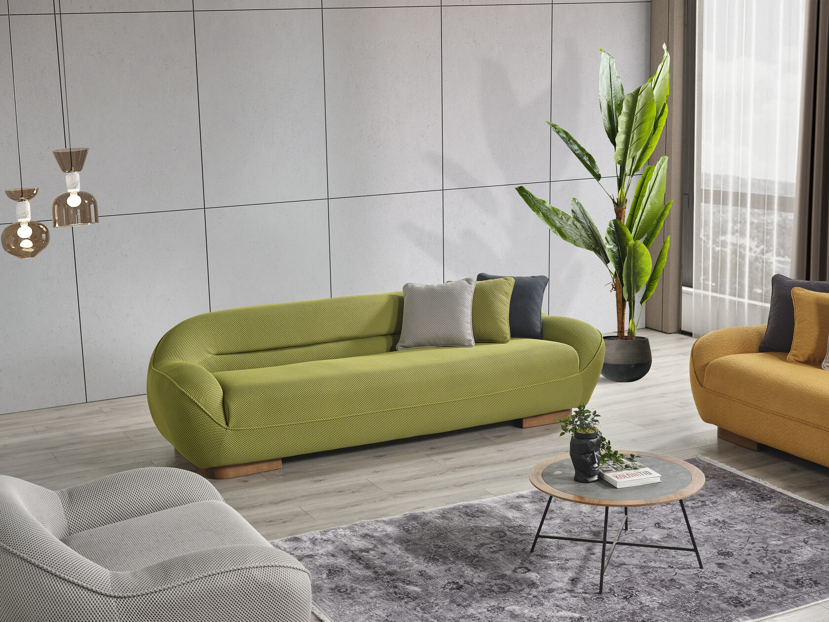 Необычная каплевидная форма дивана и изящные кантики вместо открытых швов придают ему современный и стильный вид.
