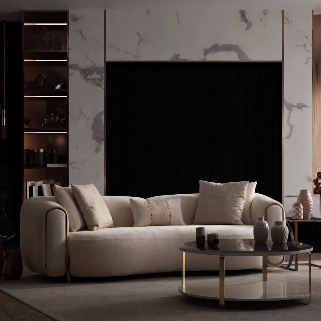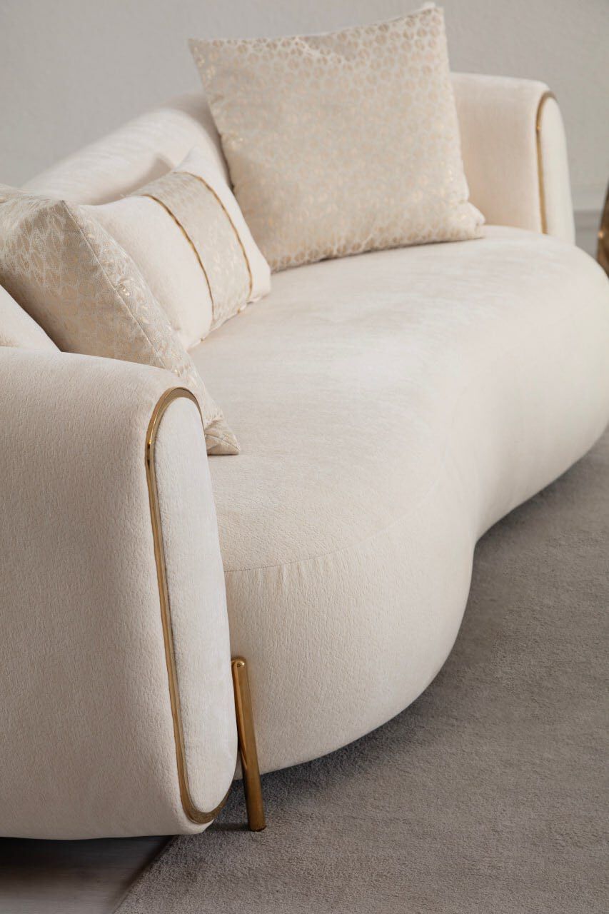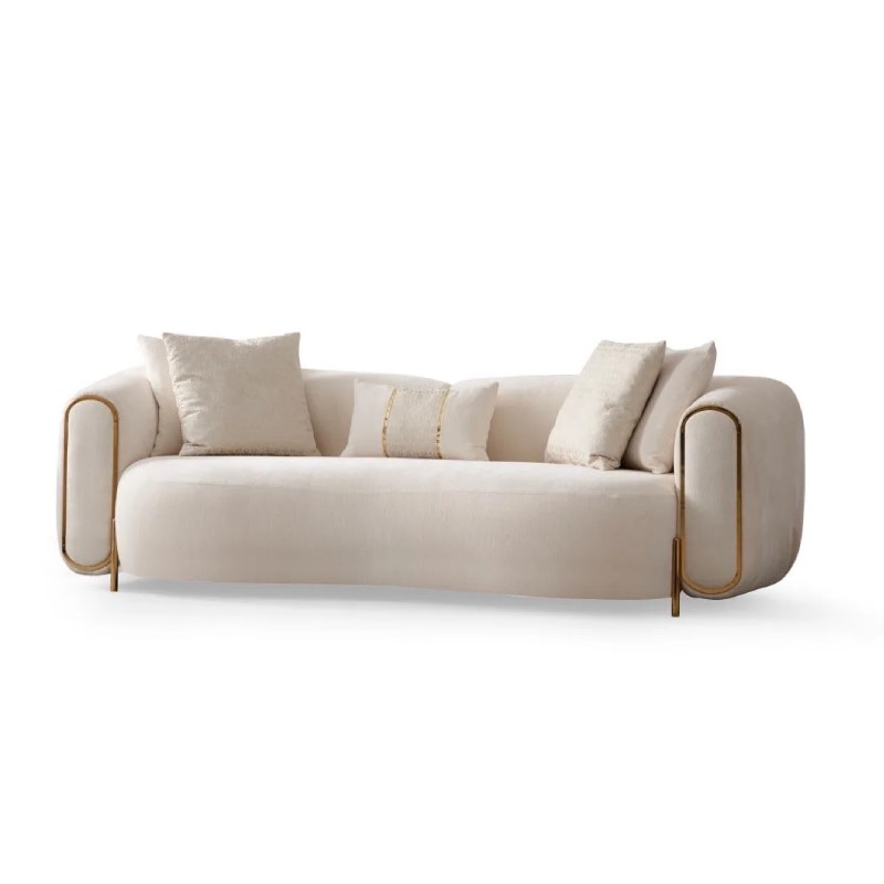 Современный диван Токио с металлическими опорами и отделкой цвета золота повторяет отличительную черту данной серии. Плавные, изогнутые формы диванов и кресел не только воплощают но и приносят нотку свежести в современный интерьер. Они становятся центральным акцентом в комнате и создают привлекательный фокус визуального интереса. Они притягивают внимание своим эффектным внешним видом и предлагают удивительный комфорт. Их изгибы тщательно продуманы, чтобы обеспечить оптимальную поддержку для тела и создать приятное ощущение при сидении. Дополнительные мягкие подушки и обивка из высококачественных материалов добавляют ощущение роскоши и комфорта. Материал обивки возможен из велюра, кожи, микровелюра, рогожки, флока, эко кожи, и т.д .Вы можете выбрать любой цвет из нашего каталога или заказать уникальный цвет по вашему желанию.
