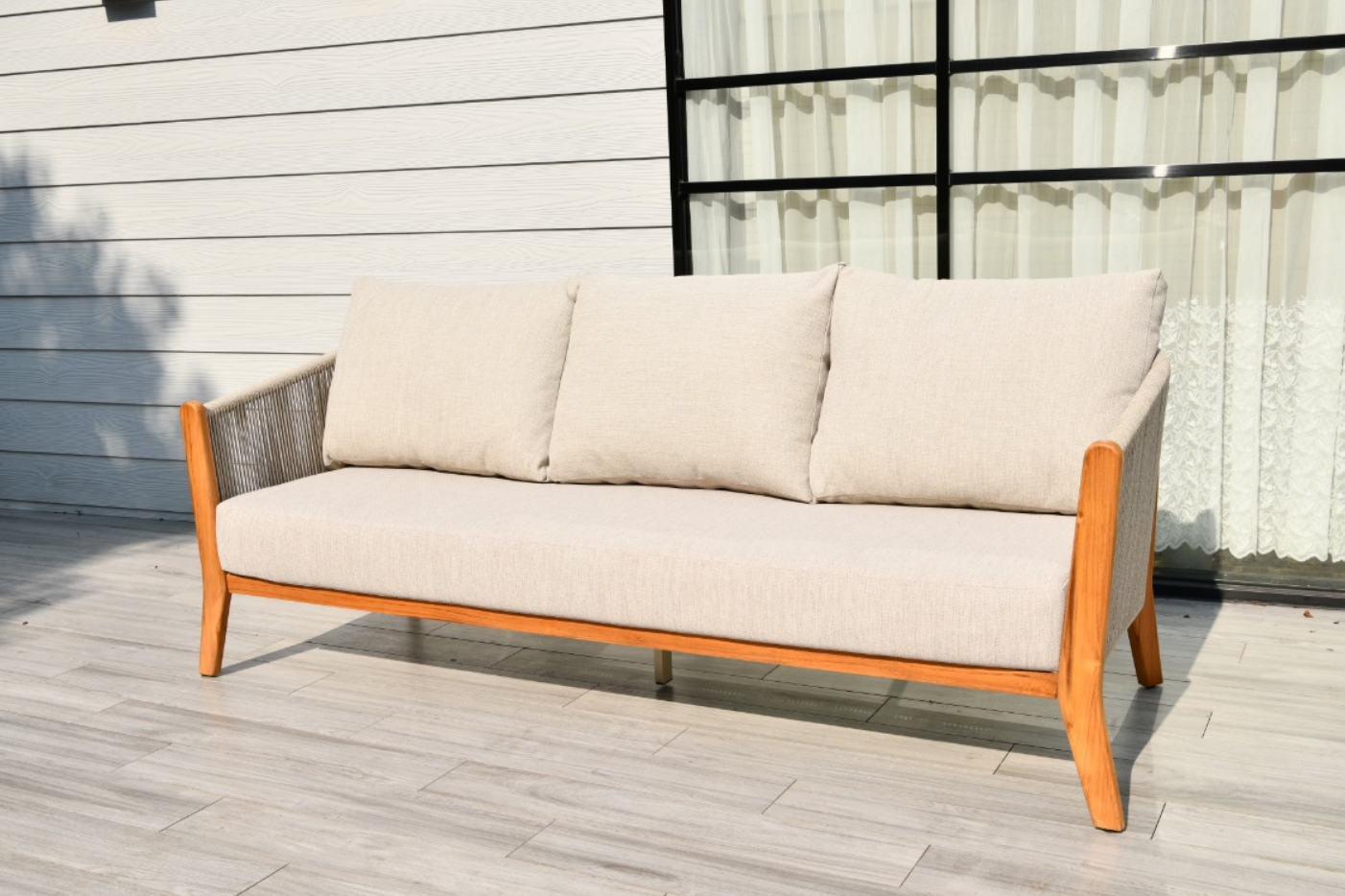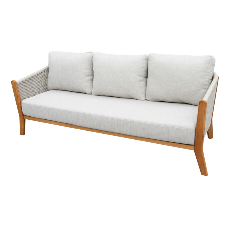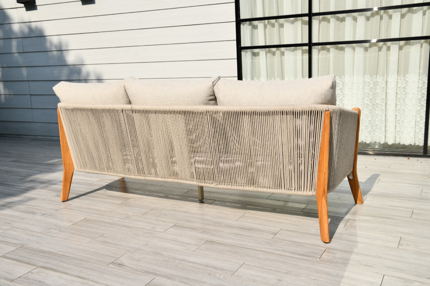 "Сидней" диван 3-местный плетеный из роупа, основание тик, каркас алюминий бежевый, роуп бежевый, ткань бежевая