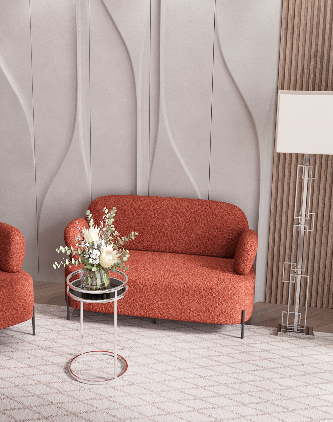 Запросить индивидуальное предложениеМягкий диван Кэнди имеет оригинальный стиль исполнения и способен стать частью любого современного интерьера. Эргономичный дизайн спинки и подлокотников обеспечит долгий и комфортный отдых. Обивка выполнена из простого в уходе букле - мягкого и нежного на ощупь. В качестве внутреннего наполнителя использован ППУ повышенной жесткости. Эластичные ремни в основании обеспечивают плавное погружение и комфорт при посадке. Каркас металлический с максимальной допустимой нагрузкой до 170 кг. Ножки выполнены в черном цвете и оснащены специальными подпятниками, которые препятствуют скольжению и предотвращают царапанье напольного покрытия.