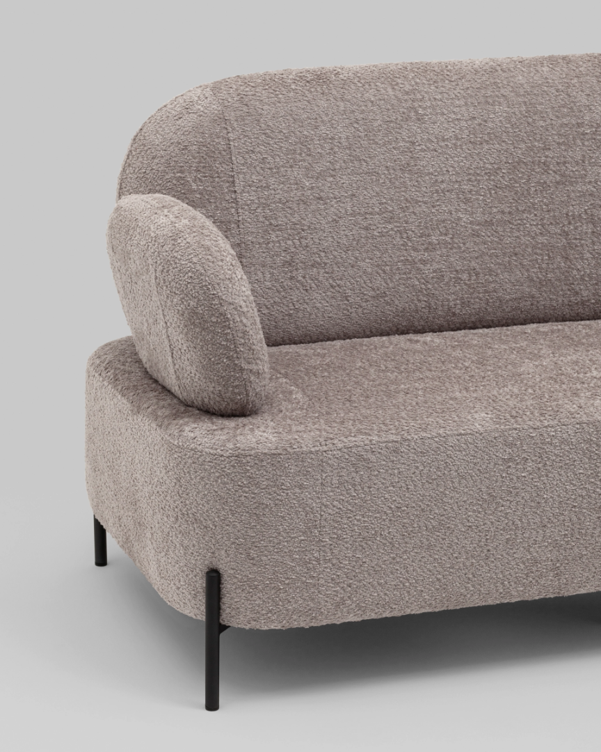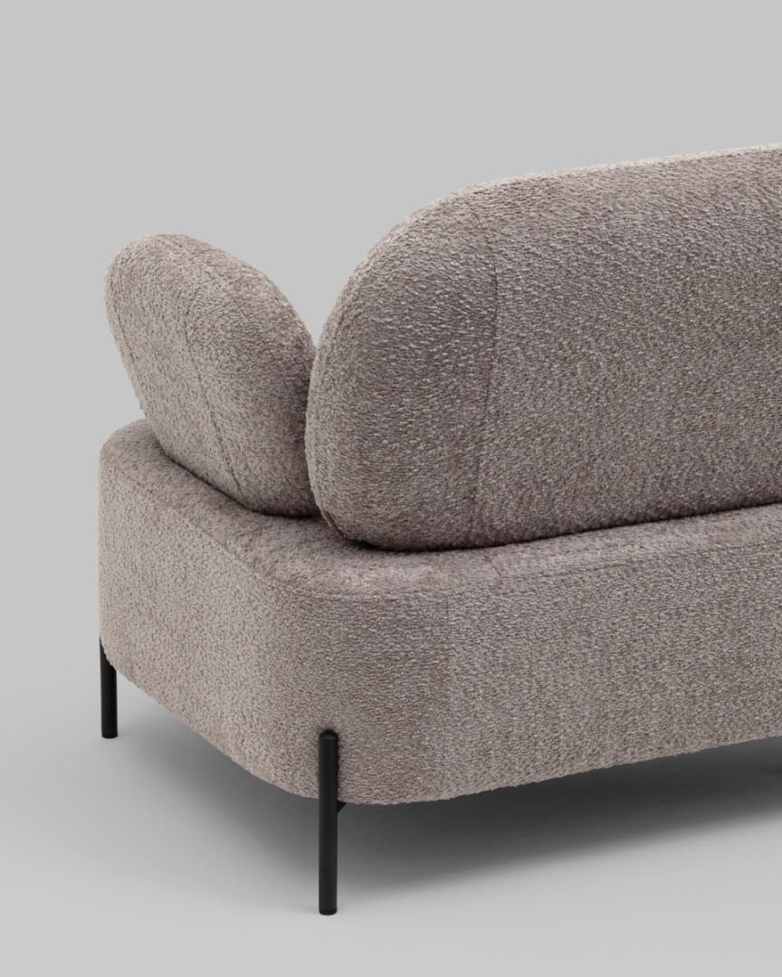 Запросить индивидуальное предложениеМягкий диван Кэнди имеет оригинальный стиль исполнения и способен стать частью любого современного интерьера. Эргономичный дизайн спинки и подлокотников обеспечит долгий и комфортный отдых. Обивка выполнена из простого в уходе букле - мягкого и нежного на ощупь. В качестве внутреннего наполнителя использован ППУ повышенной жесткости. Эластичные ремни в основании обеспечивают плавное погружение и комфорт при посадке. Каркас металлический с максимальной допустимой нагрузкой до 170 кг. Ножки выполнены в черном цвете и оснащены специальными подпятниками, которые препятствуют скольжению и предотвращают царапанье напольного покрытия.