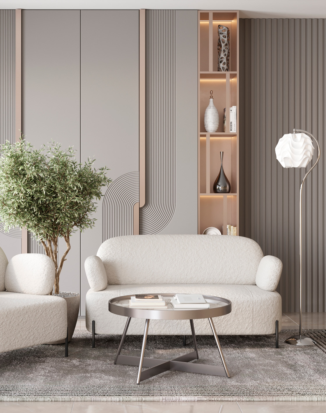 Обивка выполнена из простого в уходе букле - мягкого и нежного на ощупь.