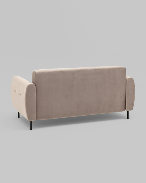 Особенности дизайна. Модель выполнена в современном стиле с элегантной светло-серой велюровой обивкой. Прямые линии и компактные формы идеально подойдут как для небольших, так и для просторных помещений. Подлокотники округлой формы и декоративные подушки придают модели особый стиль. Черные металлические ножки придают легкость и изысканность внешнему виду, делая его подходящим для различных интерьерных решений.