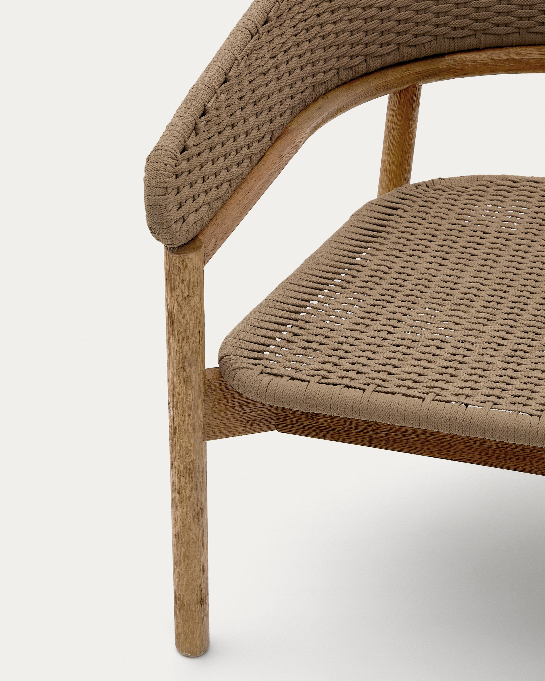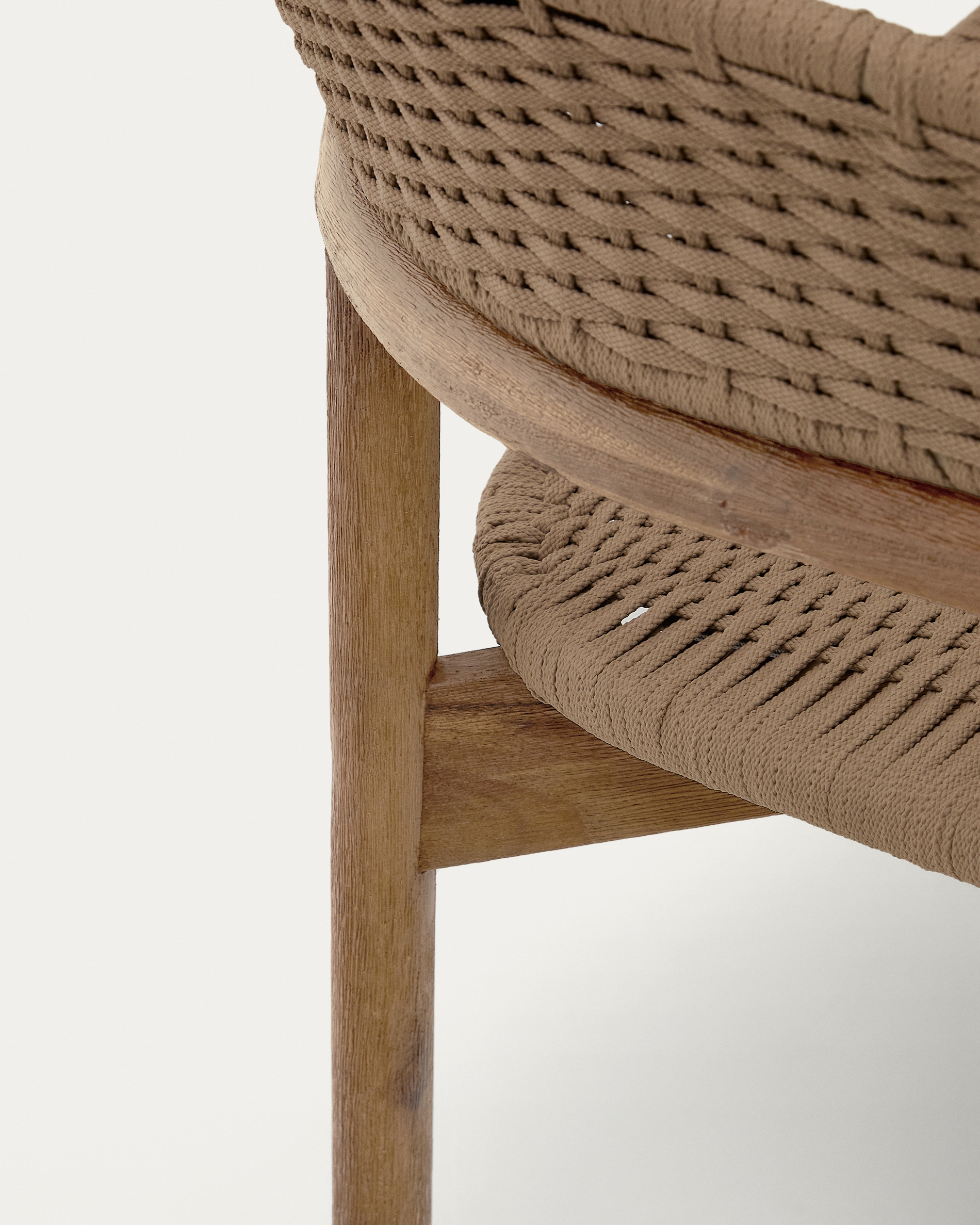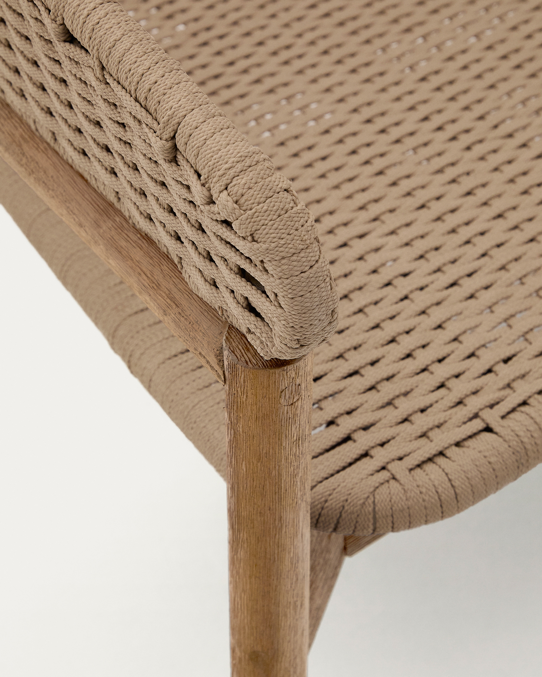 Коллекция Arinella представляет собой союз деревенского и современного. Каждое изделие сочетает в себе качество массива акации с брашированной отделкой, которая подчеркивает его естественные тона и уникальную текстуру, делая каждое изделие единственным в своем роде. Сиденье и спинка, изготовленные из устойчивой к ультрафиолетовому излучению веревочной веревки, сотканной вручную, обеспечивают прочный, современный вид, подходящий для любых типов обстановки.