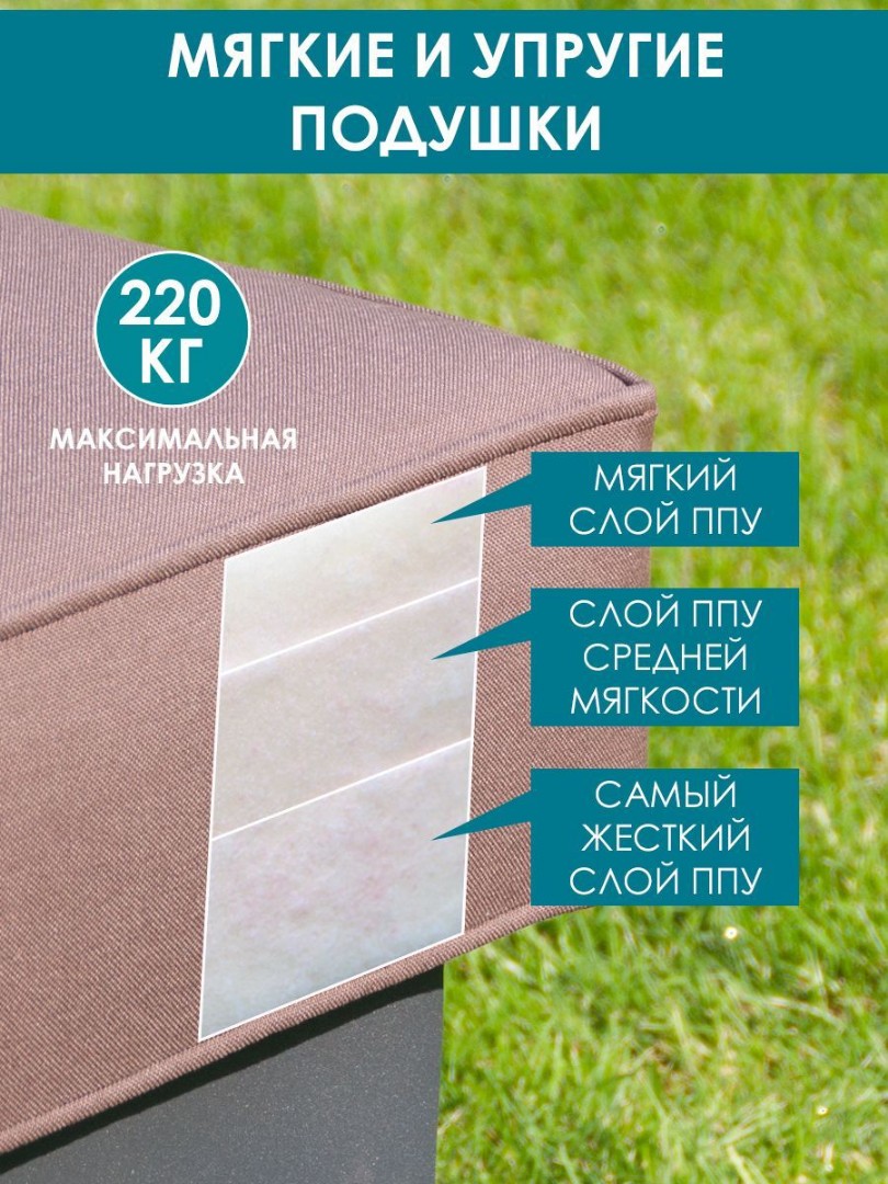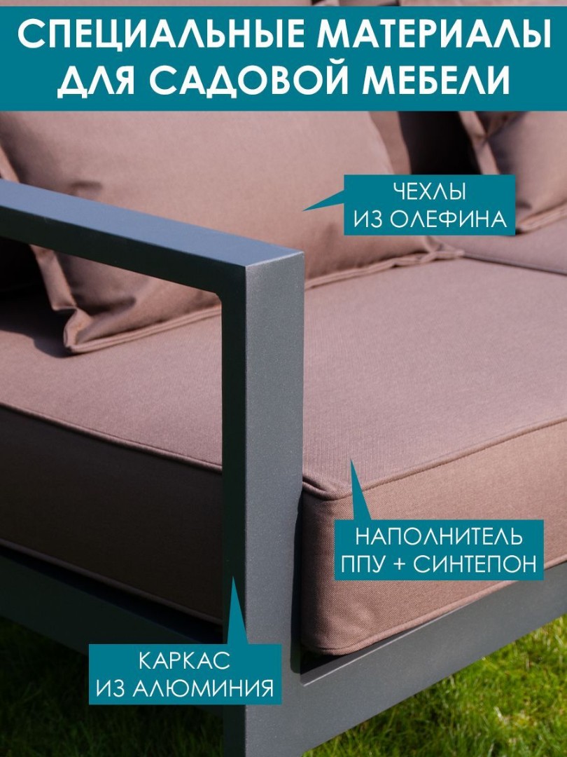 Эта садовая мебель поставляется в сборе, Вам не потребуются никакие инструменты или услуги специалиста по монтажу – достаточно вскрыть упаковку, установить каркас дивана или кресла, разместить на нем удобные подушки и наслаждаться отдыхом на природе! Кроме того, каркас диванчика без подушек достаточно легкий, поэтому его с легкостью можно перемещать и обустраивать новые лаундж-зоны или менять мебельную композицию по настроению и случаю.