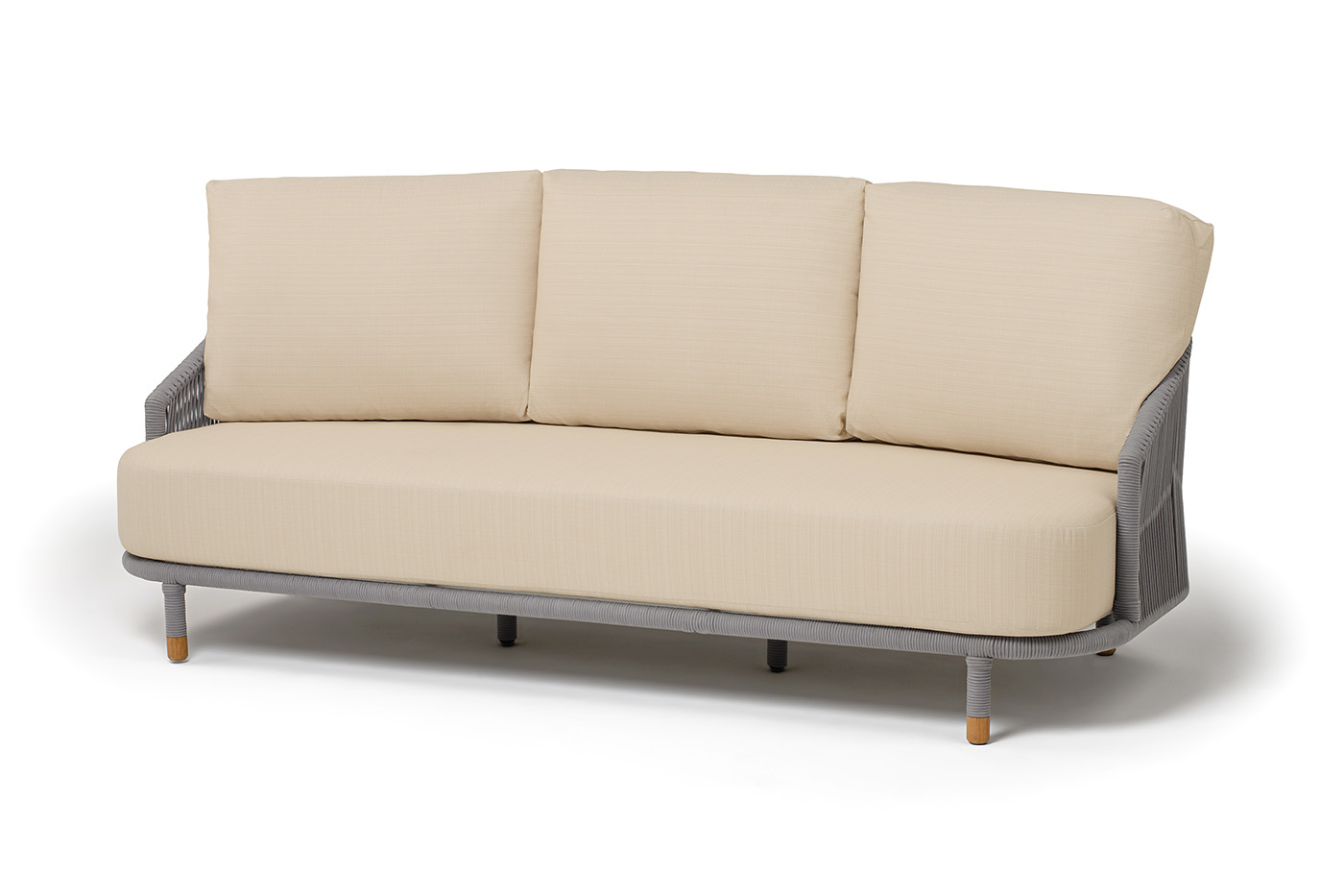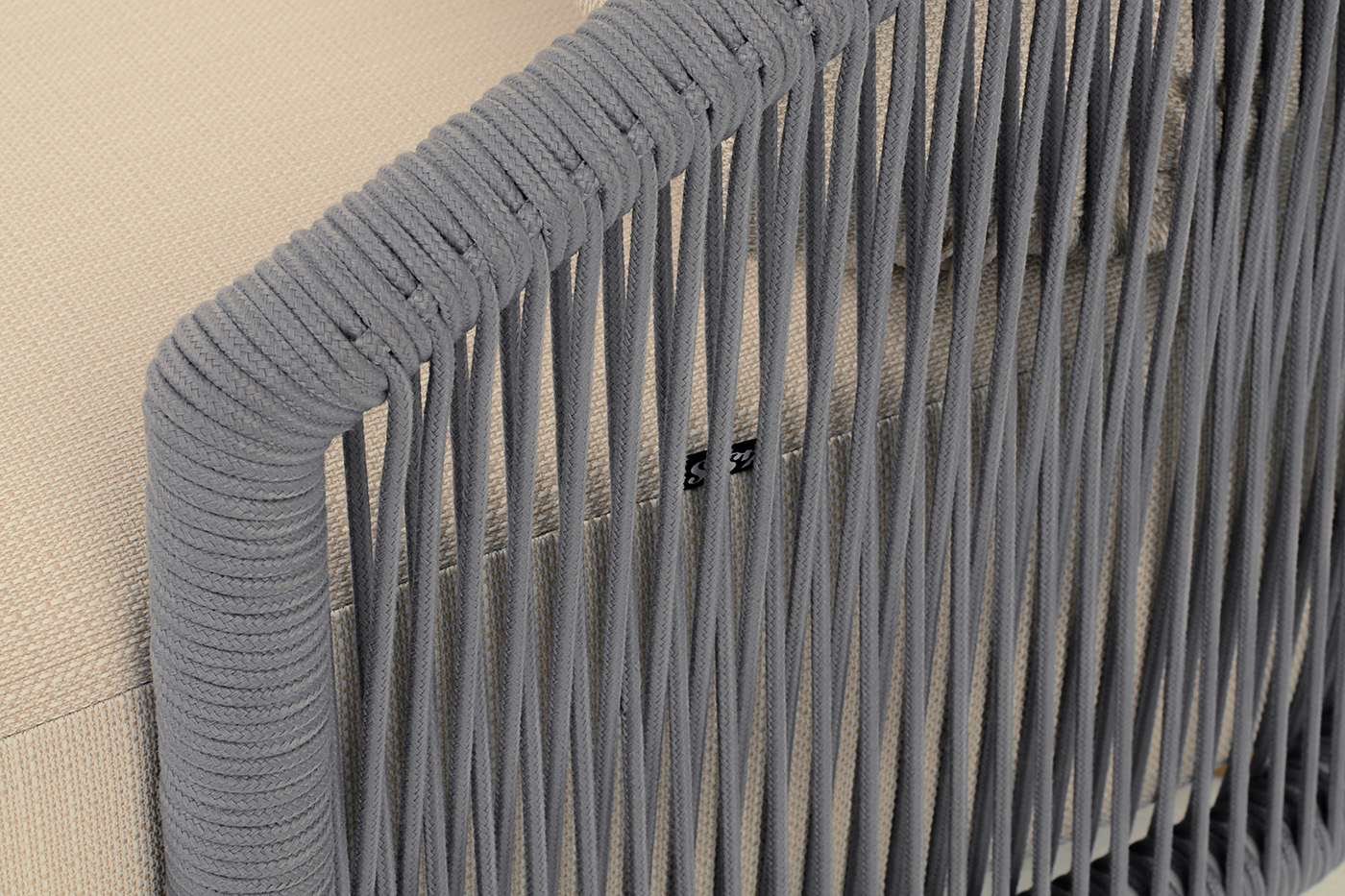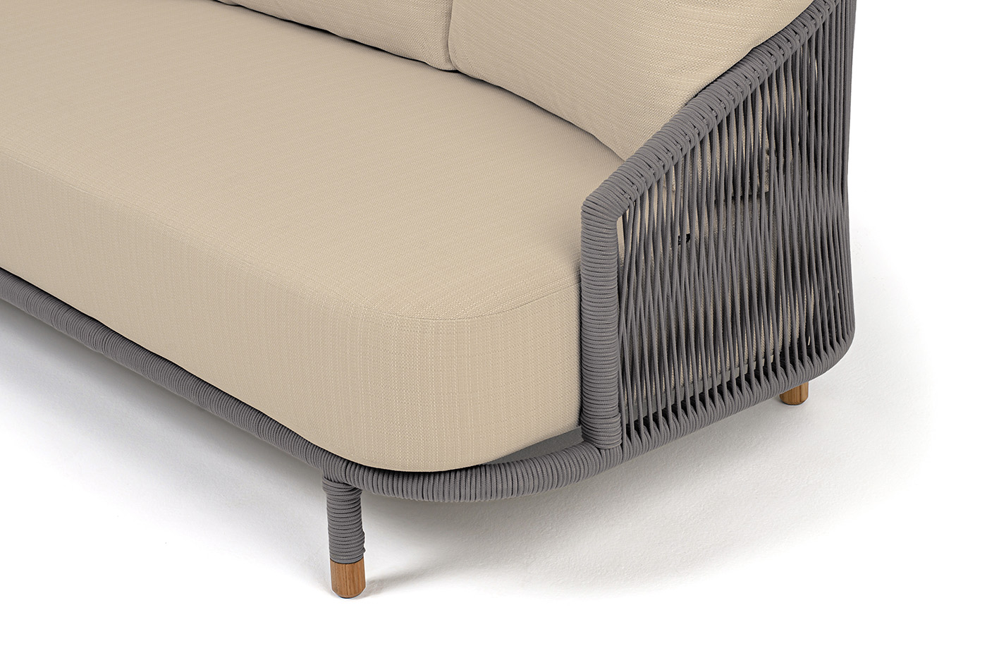 "Верона" диван 3-местный плетеный из роупа, каркас алюминий светло-серый (RAL7035) муар, роуп светло-серый круглый, ткань Mossle светло-бежевая