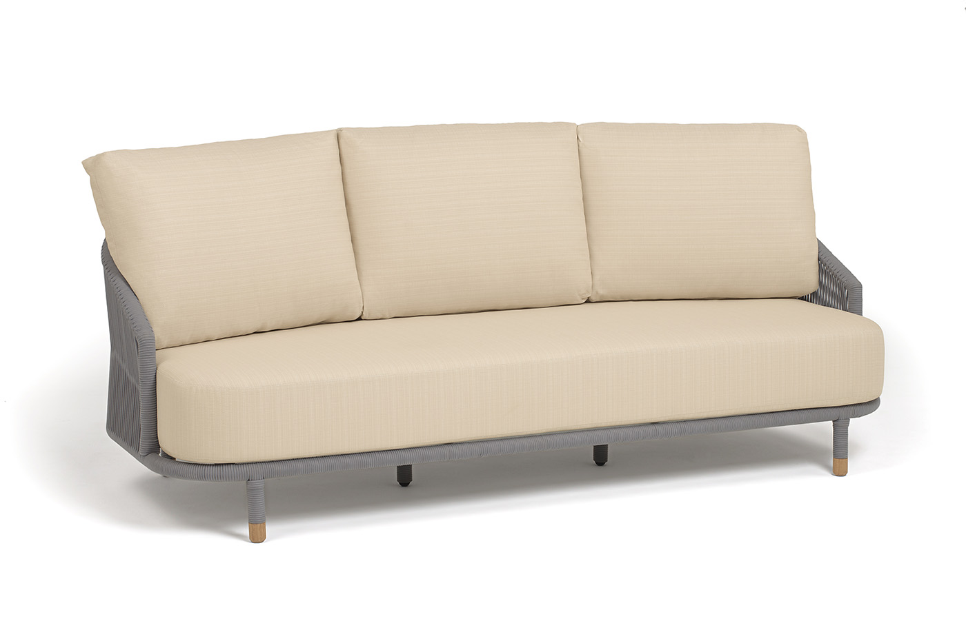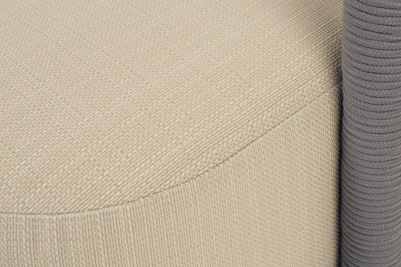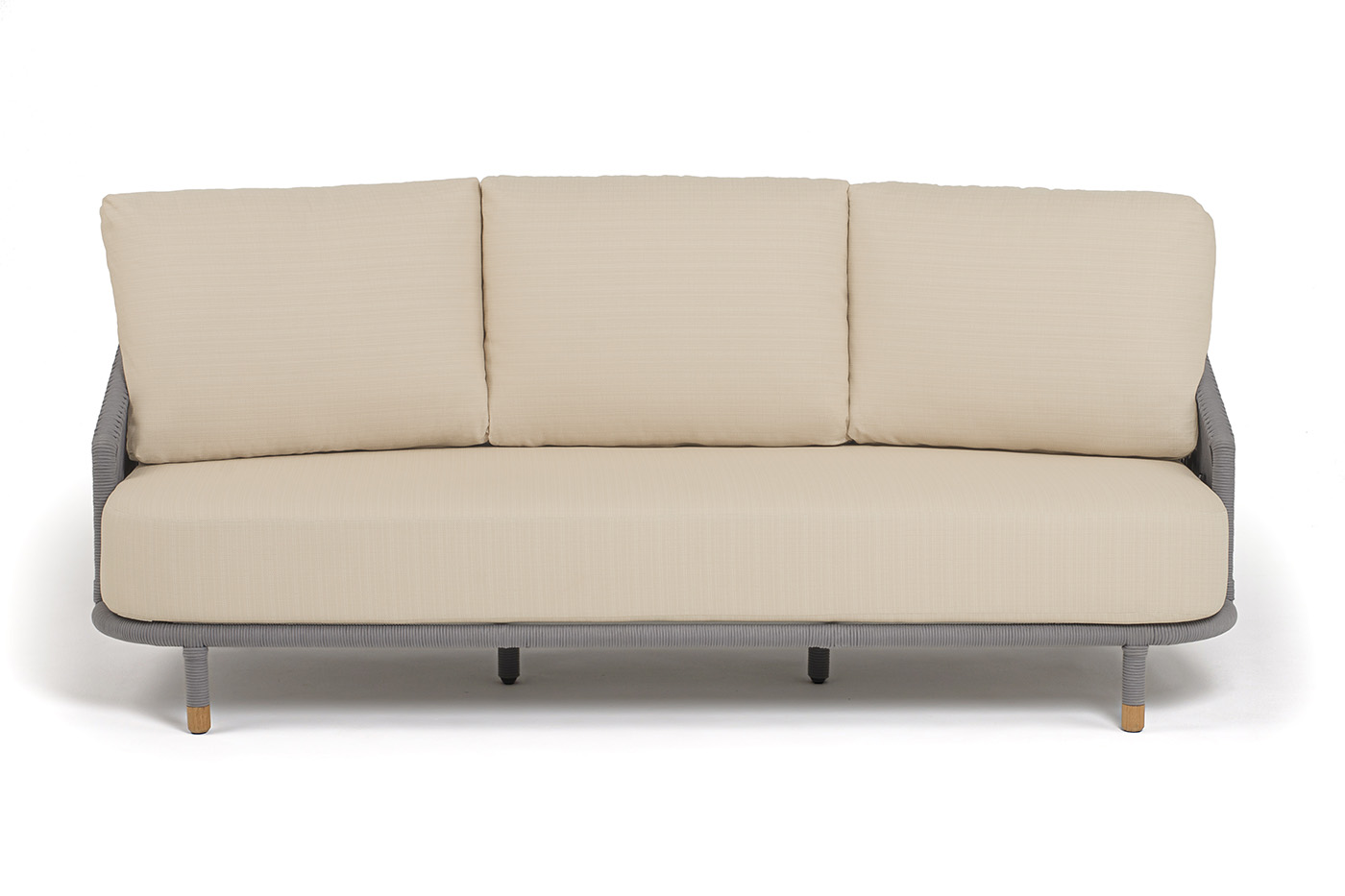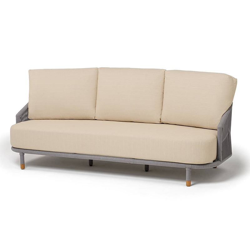 "Верона" диван 3-местный плетеный из роупа, каркас алюминий светло-серый (RAL7035) муар, роуп светло-серый круглый, ткань Mossle светло-бежевая