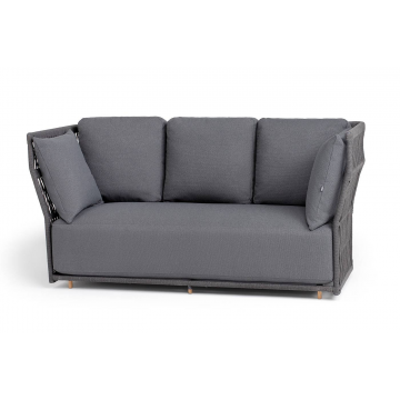 "Лугано" диван 3-местный плетеный из роупа, каркас алюминий темно-серый (RAL7024) муар, роуп темно-серый круглый, ткань темно-серая YB25-0027