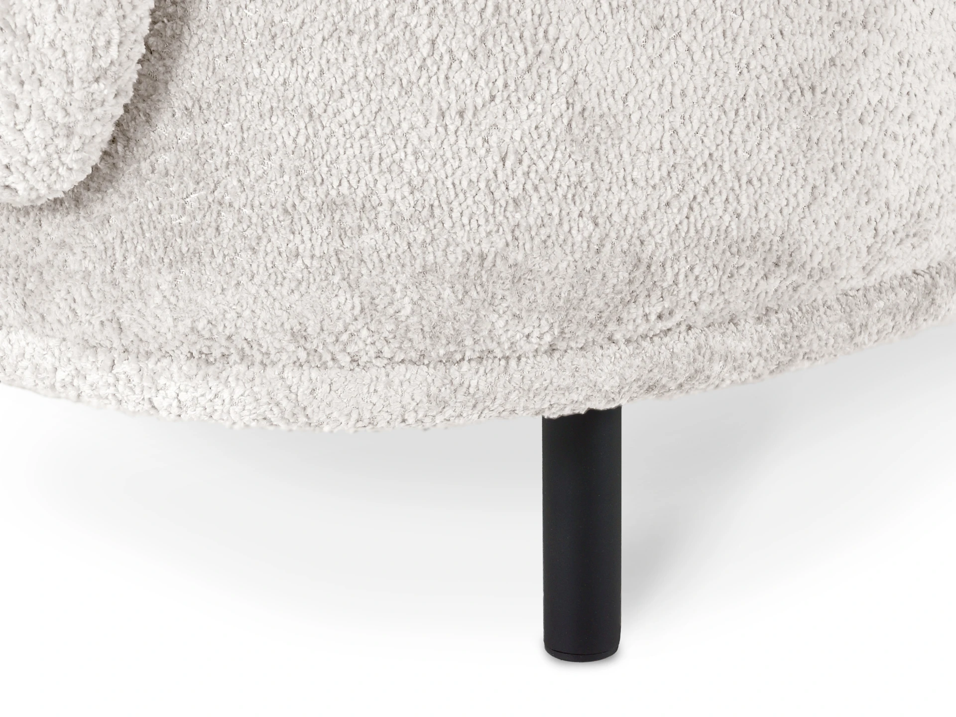 В основании дивана – четыре металлические опоры по углам высотой 150 мм. диаметром 40 мм. и одна регулируемая опора по центру основания.