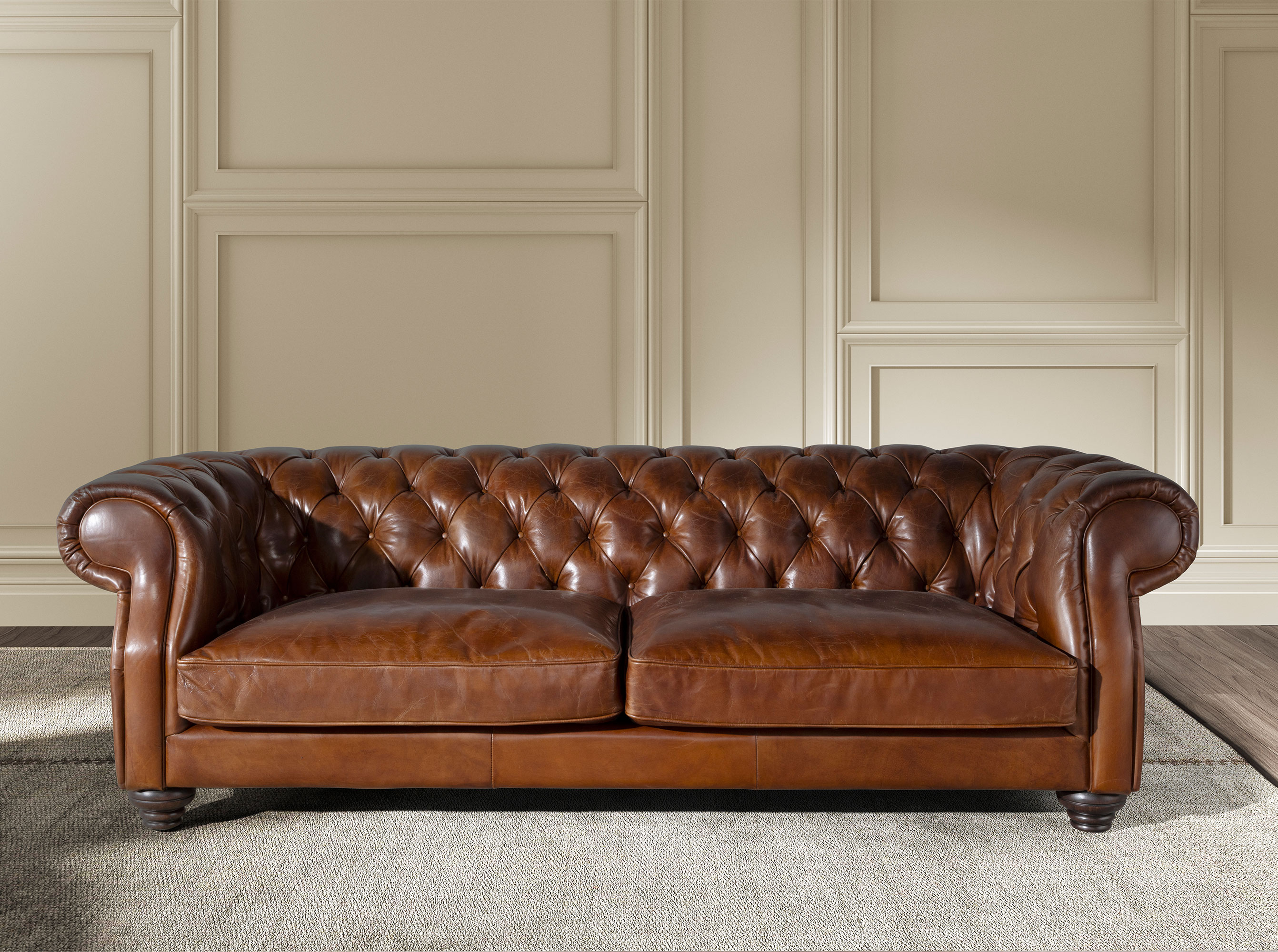 Диван Chester 3-местный из коньячно-коричневой кожи, модель 6228