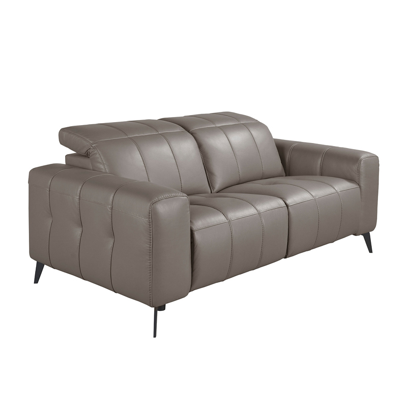 2-местный диван с реклайнером из серой кожи, модель 6209