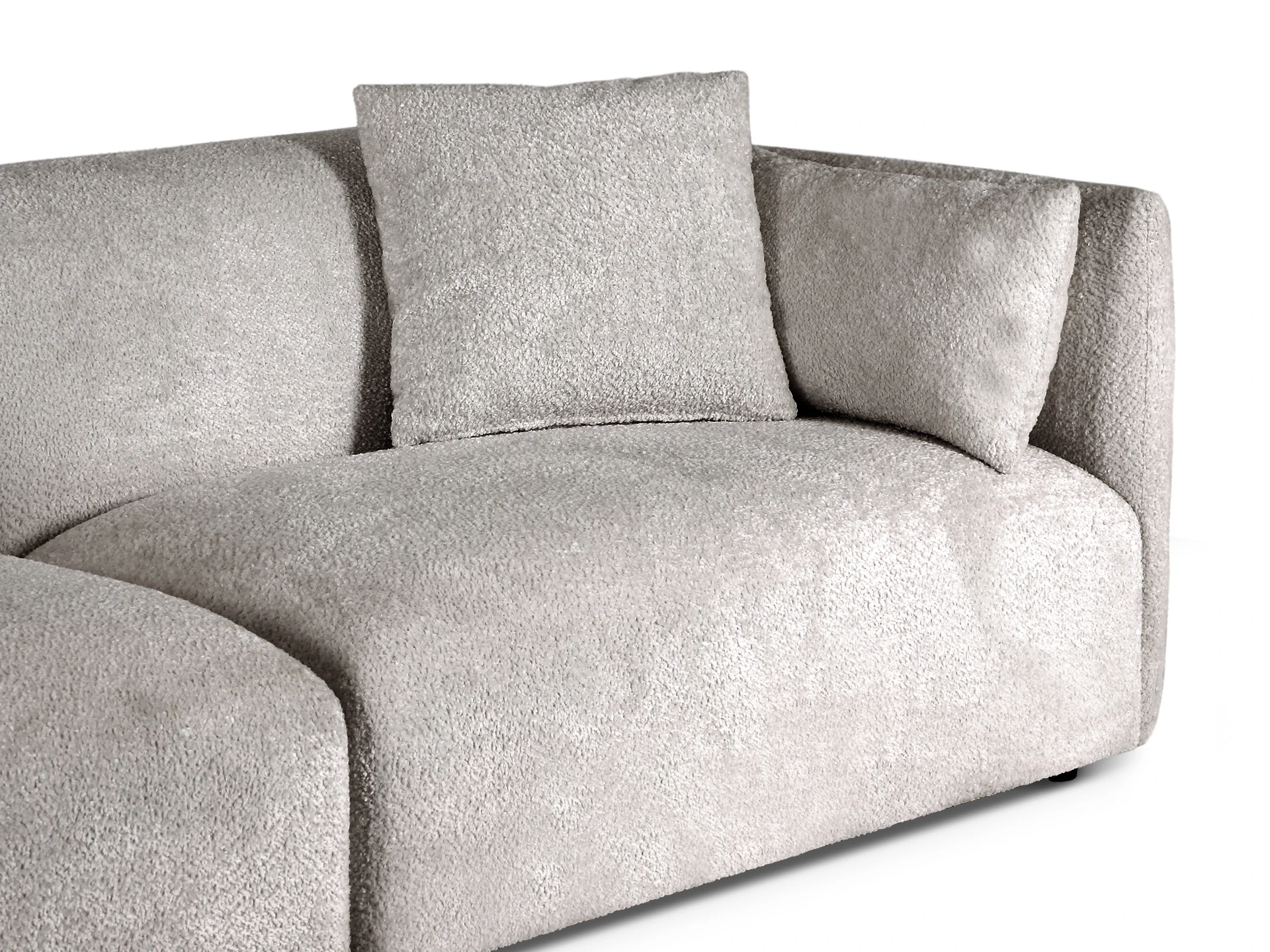 Материал обивки - искусственный мех, материал ножек - пластик. Наполнитель декоративных подушек и подушек - шарики п/э первичный. Лицевой чехол декоративных подушек - съемный, на молнии.
