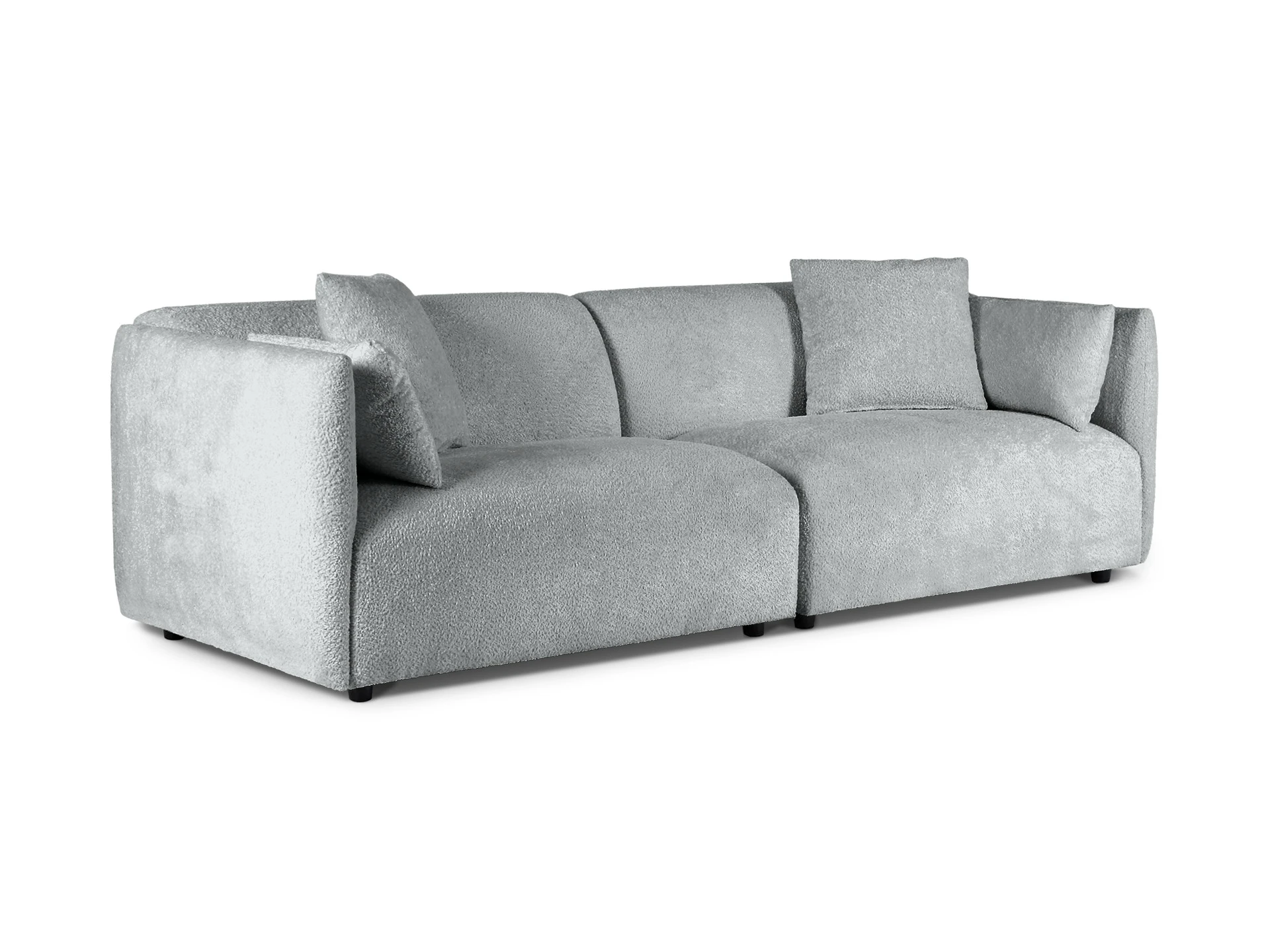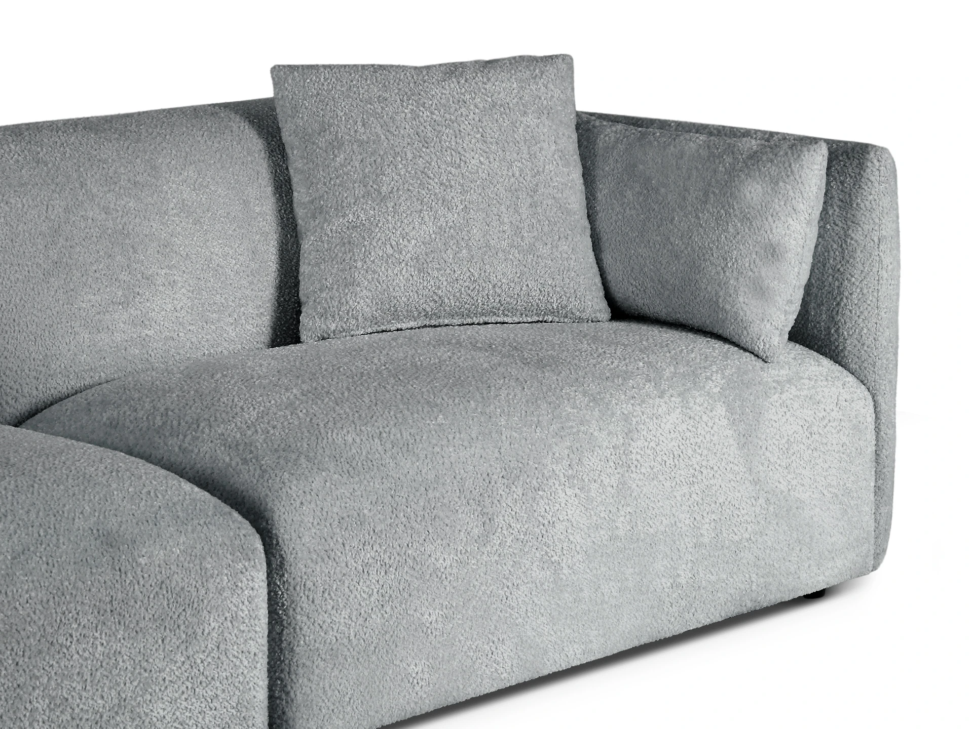 Материал обивки - искусственный мех, материал ножек - пластик. Наполнитель декоративных подушек и подушек - шарики п/э первичный. Лицевой чехол декоративных подушек - съемный, на молнии.